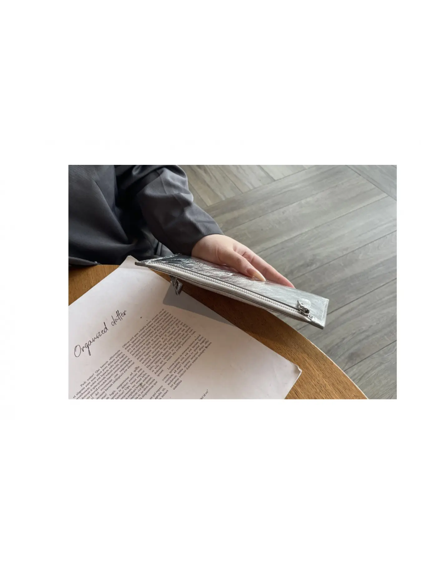 Minimalist Silver Metallic Wallet - Long Slim Zip Clutch Pouch, Versatile Daily Use Card & Coin Holder for Women