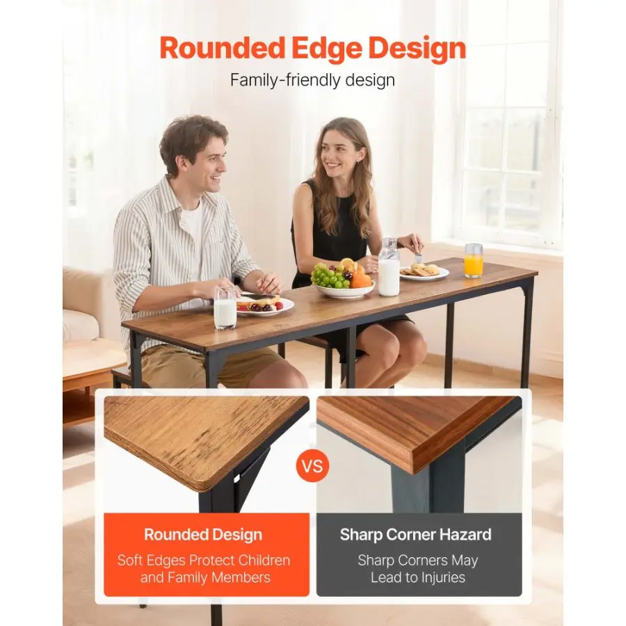 VEVOR Bar Table, 5PCS 47 Bars Tables Set, Bar Tables and Chair Set with Rounded Edge Design, Rectangular Pub Table with Four Stools for Living Room, Dining Room, Kitchen, Walnut Color, BlackVEVOR Bar Table, 1PCS 53″ Kitchen Bar Table, Tall Dining Tables with Rounded Edge, Rectangular High Top Kitchen Tables for Balcony, Living Room, Light Brown, Black, Extended Horizontal Design