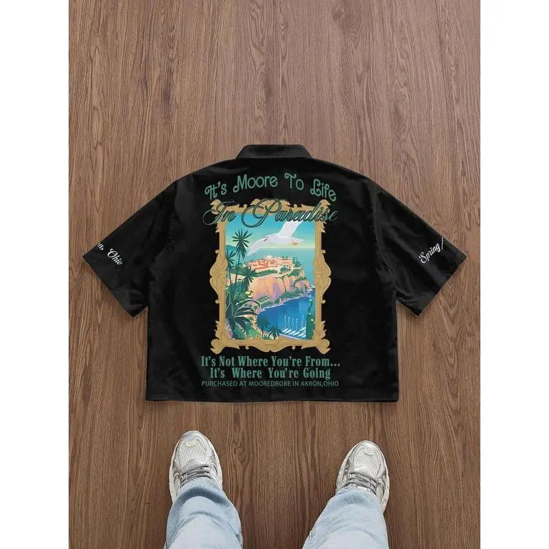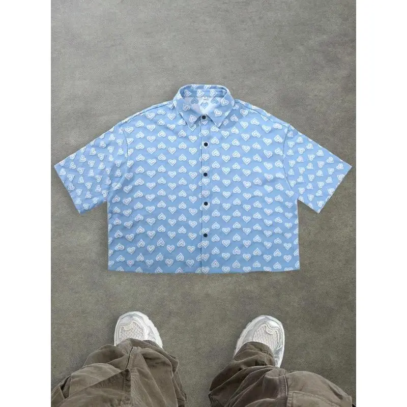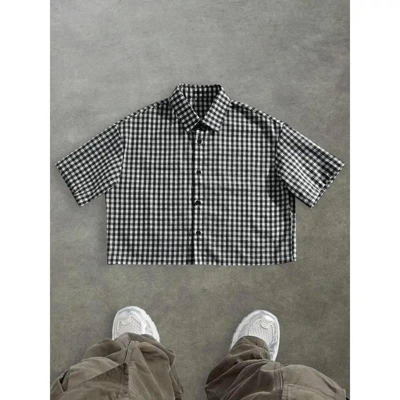 Men's checkered short sleeved shirt, high street retro style, casual fashion, fashionable street wear, outdoor wear, simple design