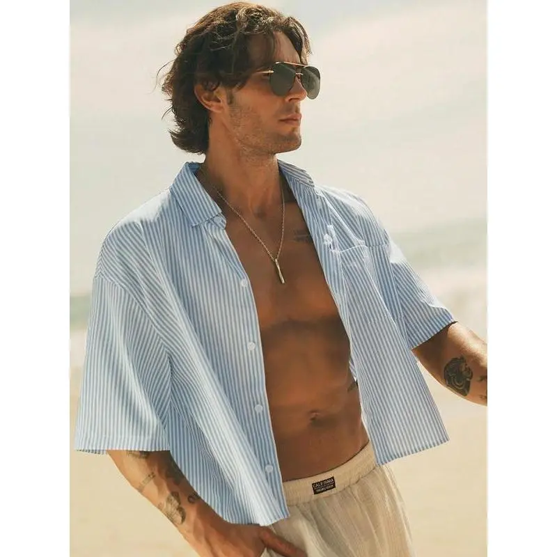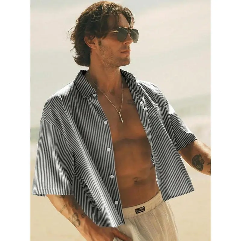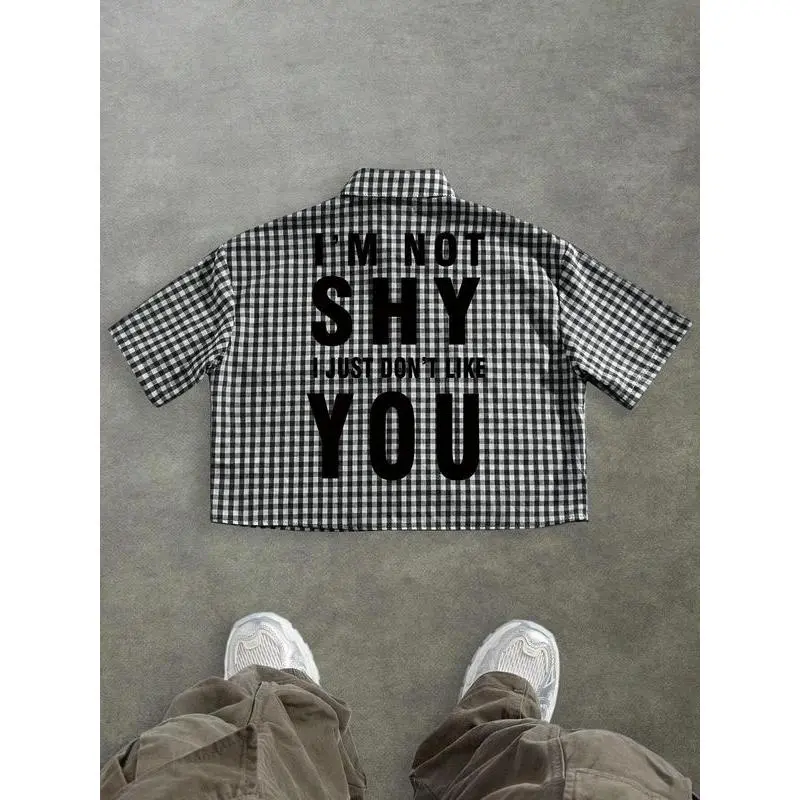 5. Men's checkered short sleeved shirt, high street retro style, casual fashion, fashionable street wear, outdoor wear, simple design