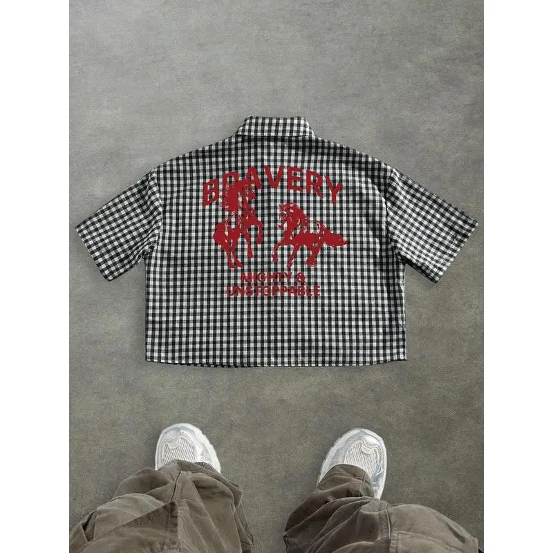 【Fresh Look】: This short-sleeved shirt features a classic check pattern, adding a vibrant touch to summer outfits. 【Moderate Thickness】: Crafted from woven fabric with a moderate thickness, ensuring breathability for warm weather wear. 【Fitted Cut】: Designed in a fitted cut, this shirt flatters the body silhouette while providing a refined appearance. 【High-Street Influence】: Embody street-style trends with this urban-inspired piece, perfect for making a fashion statement. 【Outdoor Ready】: Equipped for outdoor adventures, this shirt combines functionality with a modern urban edge.