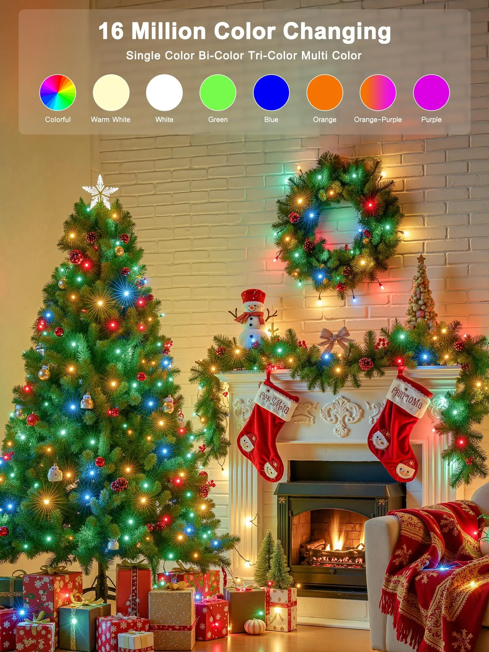 ·[16 Million Colors Changing Christmas String Lights] Our Led tree lights offer a wide spectrum of colors, including single colors, bi-colors, tri-colors, and multi-colors for year-round lighting decor. Choose from multicolors, white, red & white, red & green, red white & green, green & white for Christmas; red white blue for July 4th; orange, purple, orange & purple for Halloween; green for St. Patrick's Day; and red/pink/purple for Valentine's Day