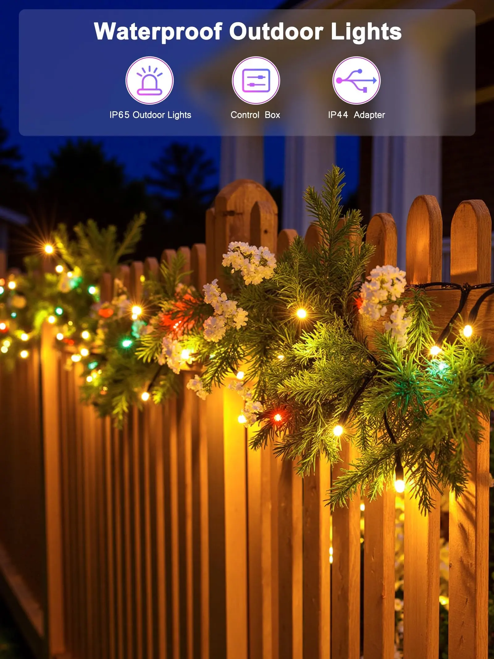·[Plug-in String Lights] With an IP44 waterproof rating, these outdoor string lights are suitable for indoor and outdoor use. Illuminate any space with these colorful LED fairy lights, enhancing the ambiance both indoors and outdoors.【NOTE】 When using outdoor, please kindly protect the power adapter and electric transformer from the water!
