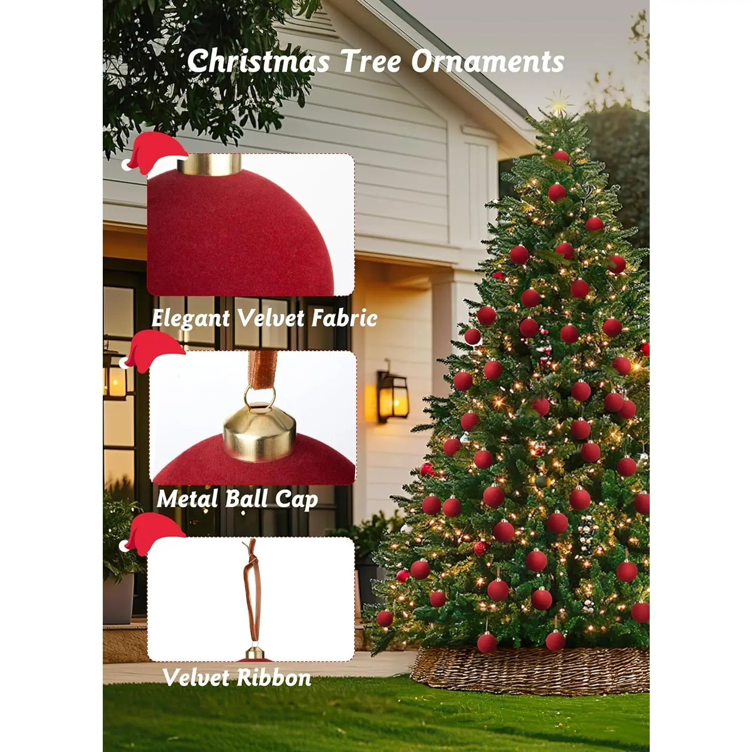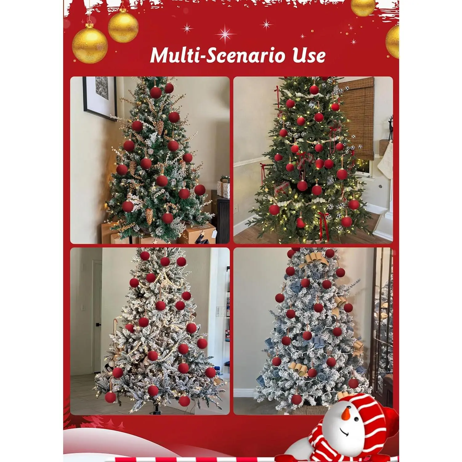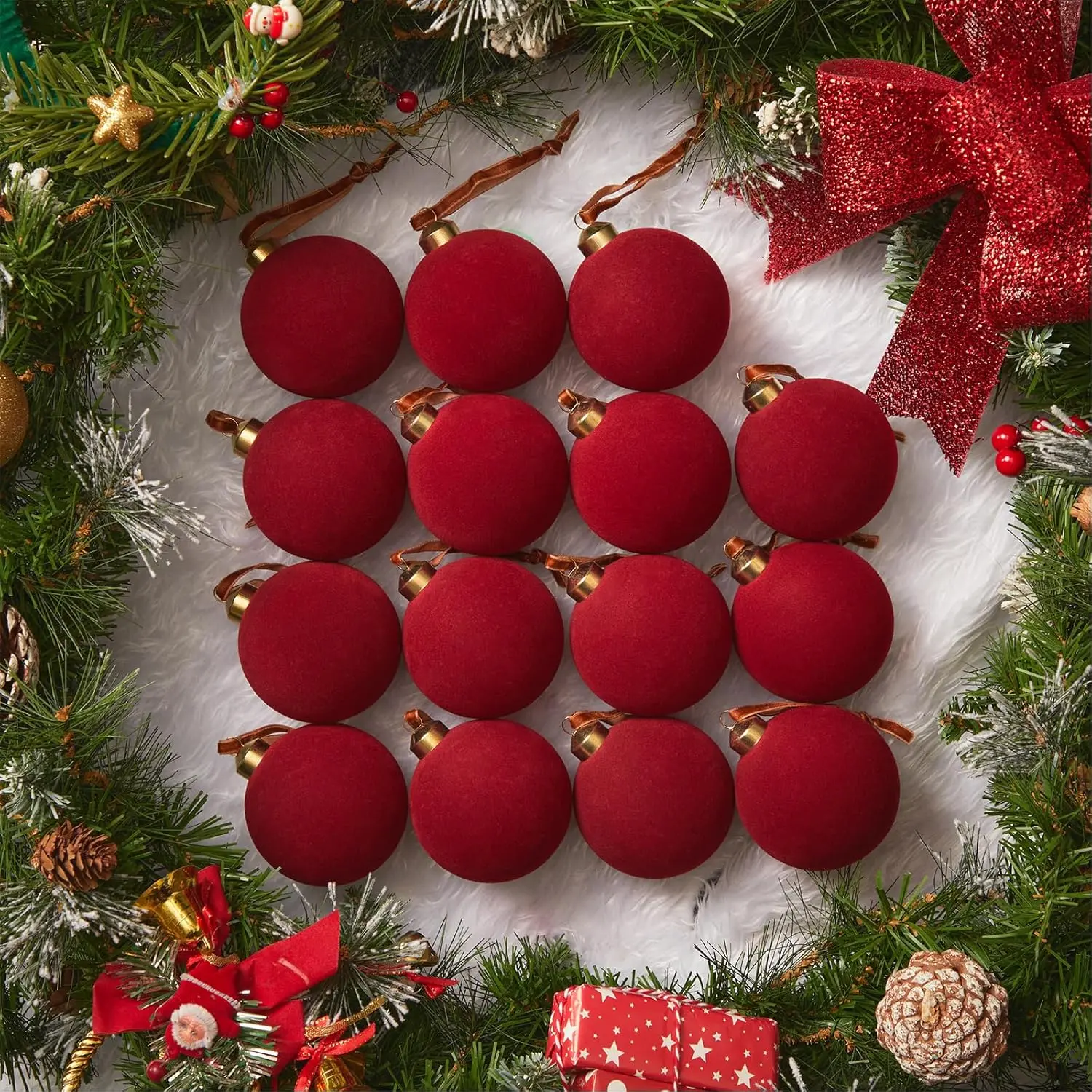 ·[Quality Material] Christmas ornaments balls are made from quality velvet material, giving them an elegant look; The sturdy shatterproof construction of the Christmas balls ensures they won't break easily, providing you with a long-lasting and reusable Christmas tree decoration to enhance your holiday experience