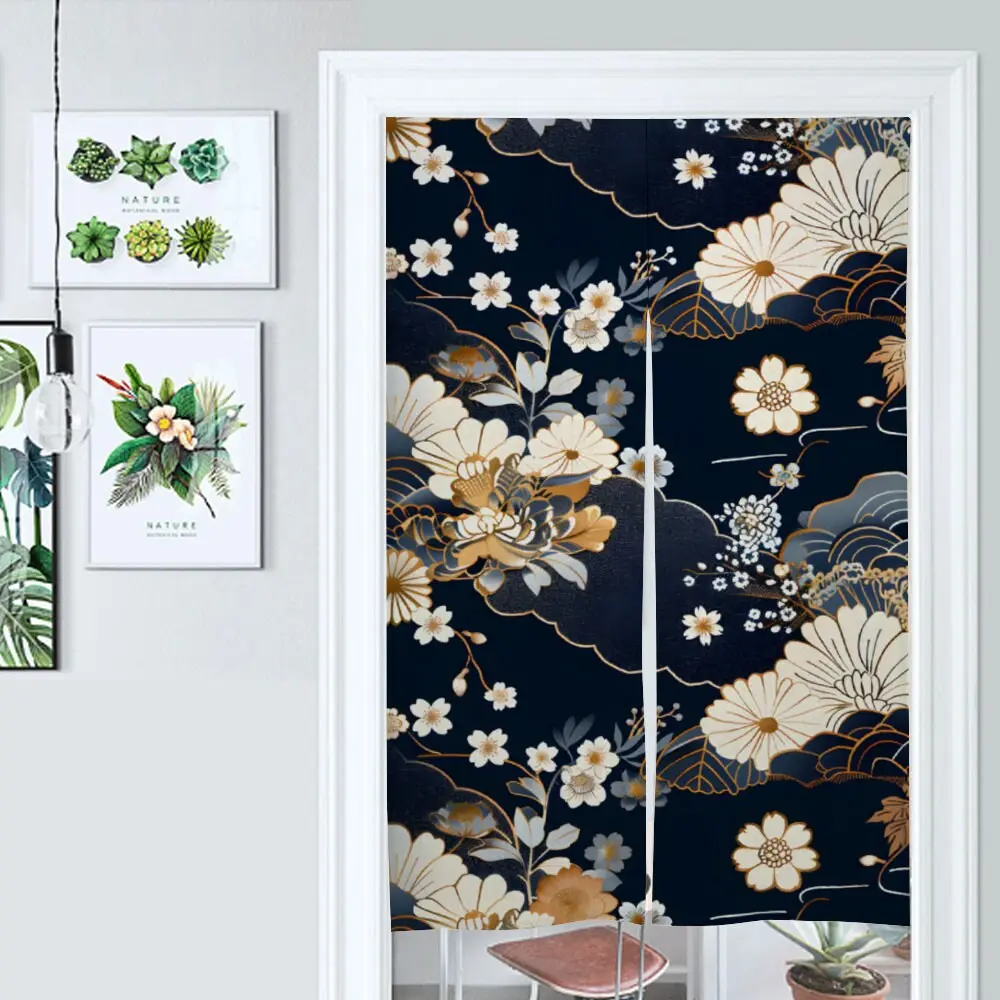 5. Japanese Noren, Mixed Floral Cherry Blossoms Noren Door Curtain - Japanese Traditional Pattern Room Divider - Japanese Door Curtain
