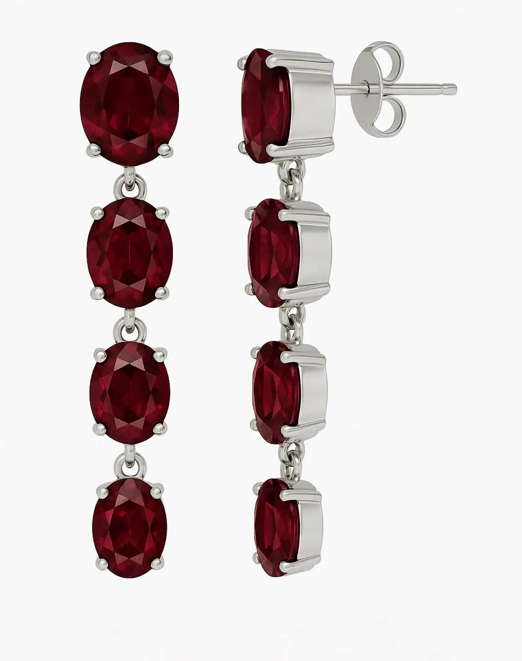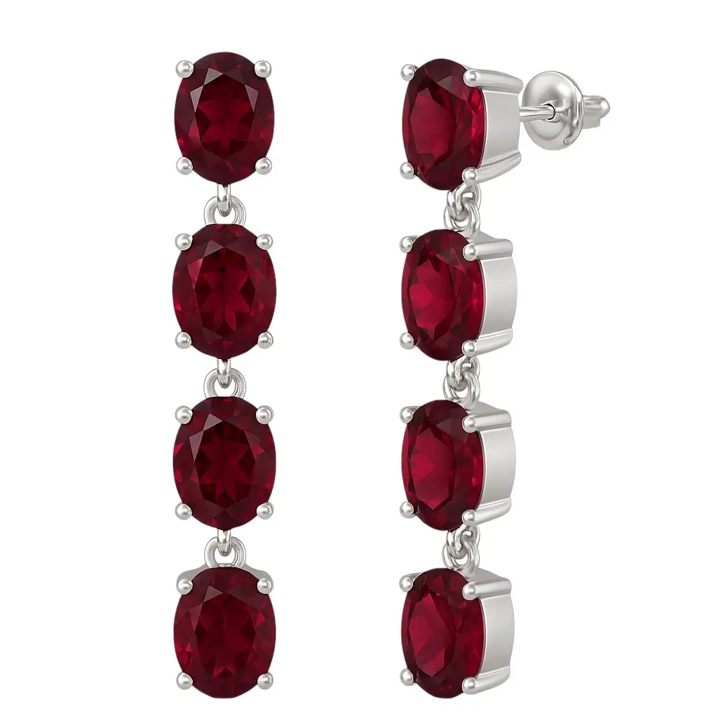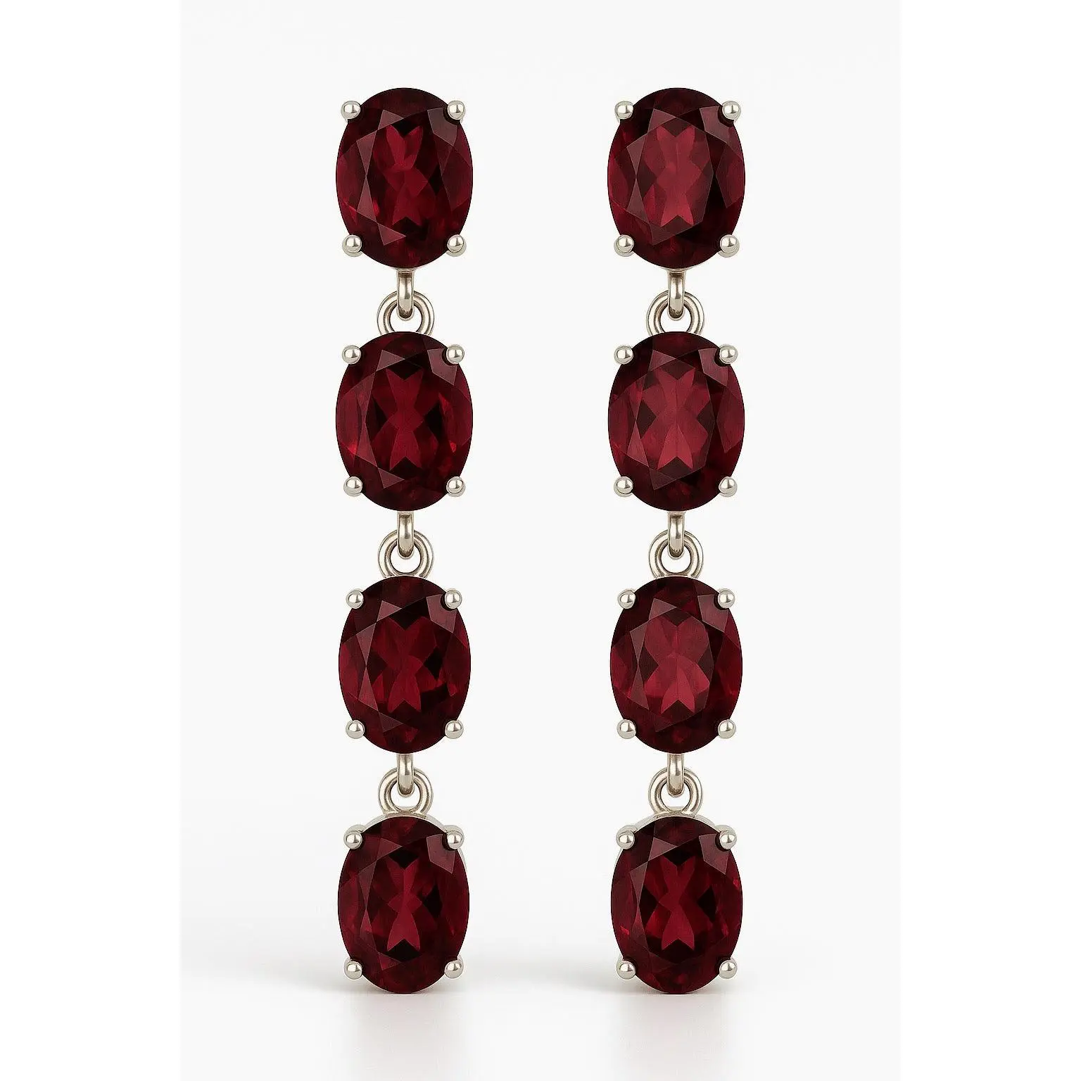 Introducing the radiant allure of our 8ct Natural Oval Red Garnet Pin Dangle Earrings—a captivating expression of bold elegance and timeless sophistication. These meticulously crafted earrings feature a striking ensemble of four prong-set oval red garnets each, creating a mesmerizing dance of color and light.