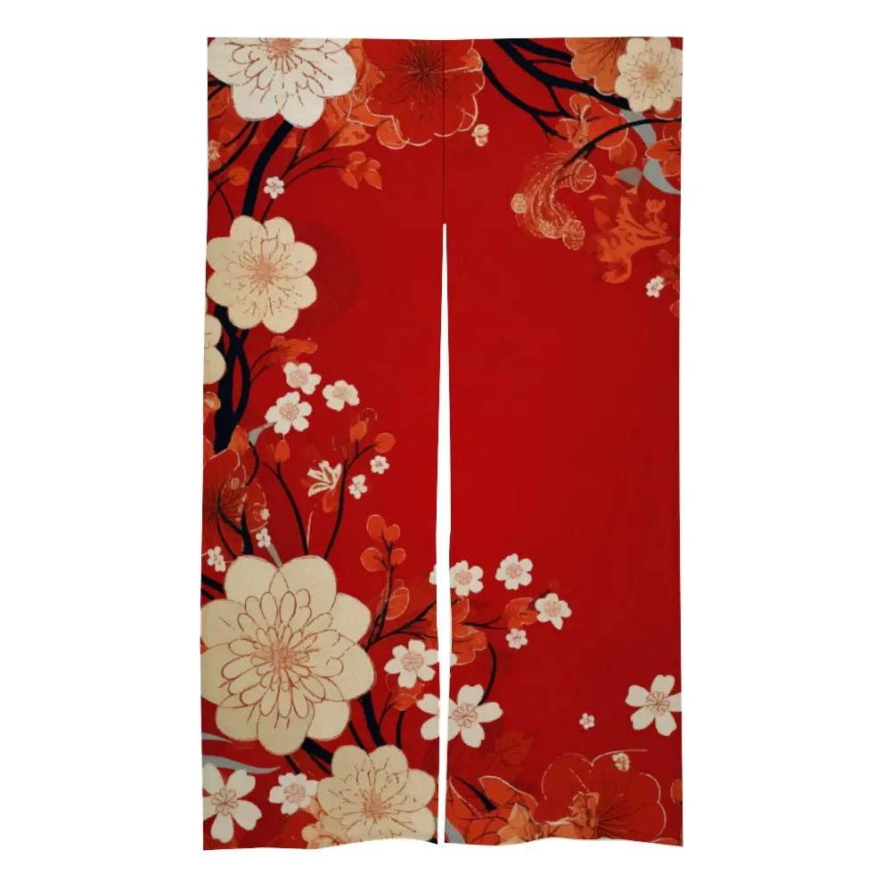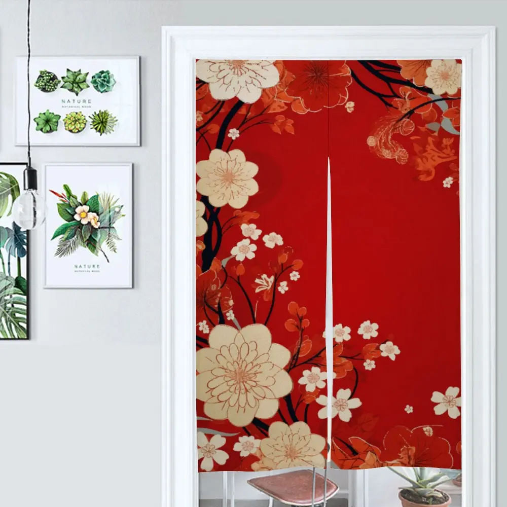 Japanese Red Noren - Red Cherry Blossom Floral Door Curtain - Japanese Traditional Room Divider for Home Decoration - Japanese Door Curtain
