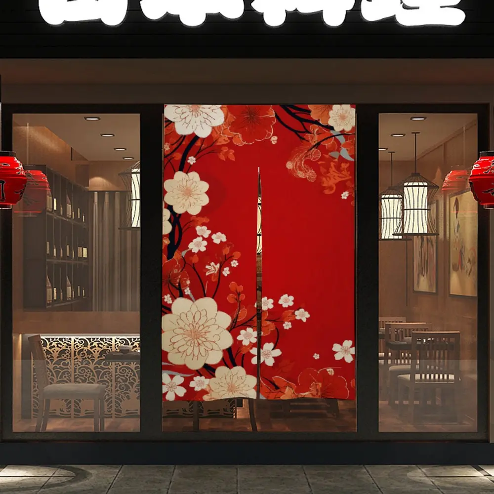 5. Japanese Red Noren - Red Cherry Blossom Floral Door Curtain - Japanese Traditional Room Divider for Home Decoration - Japanese Door Curtain