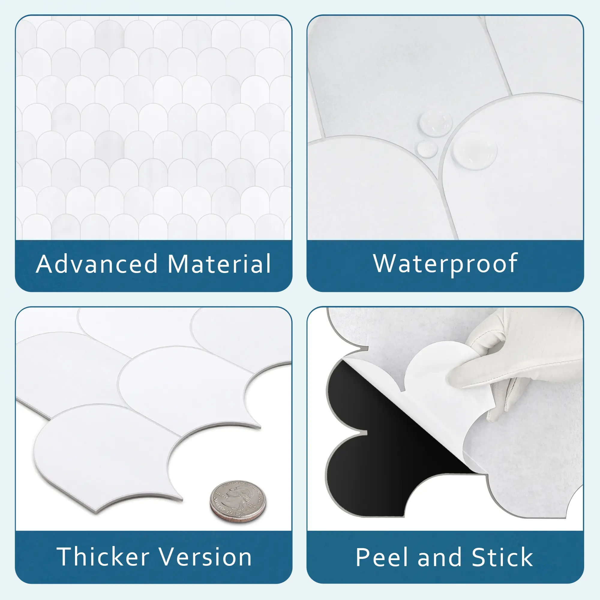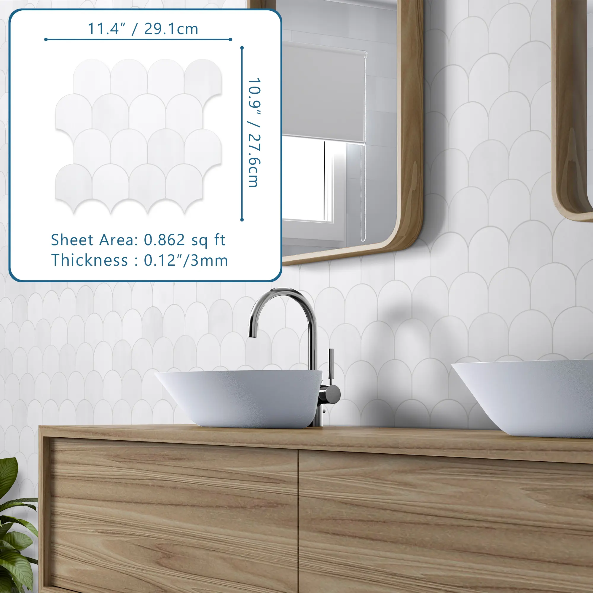 INNO STICKERS peel and stick tile enhances your space with timeless elegance. They're easy to install directly over existing panels and smooth surfaces. Perfect for refreshing kitchen backsplashes, bathroom wall, fireplace, or laundry wall quickly, affordably and easily. Just peel and stick to add modern style to your home.