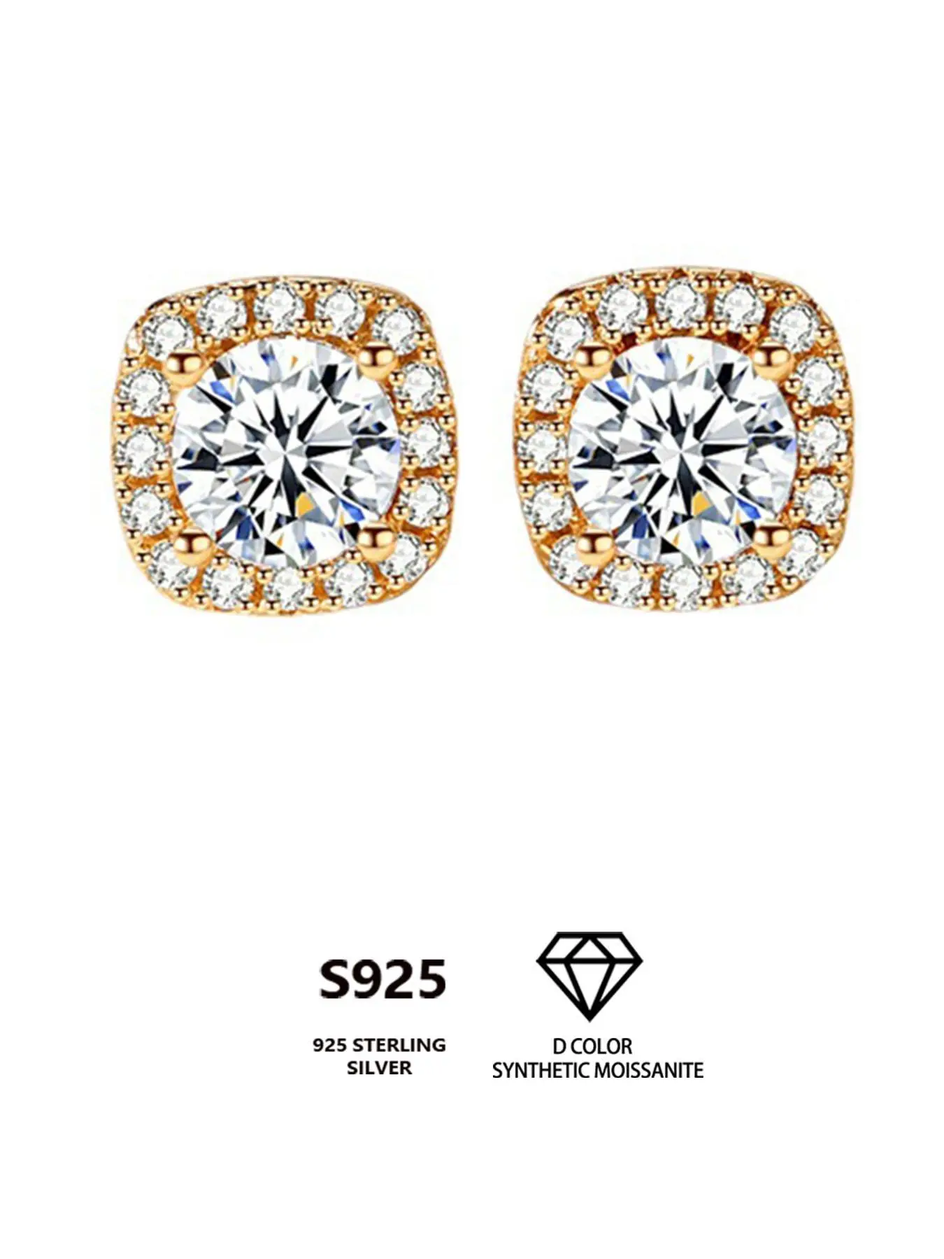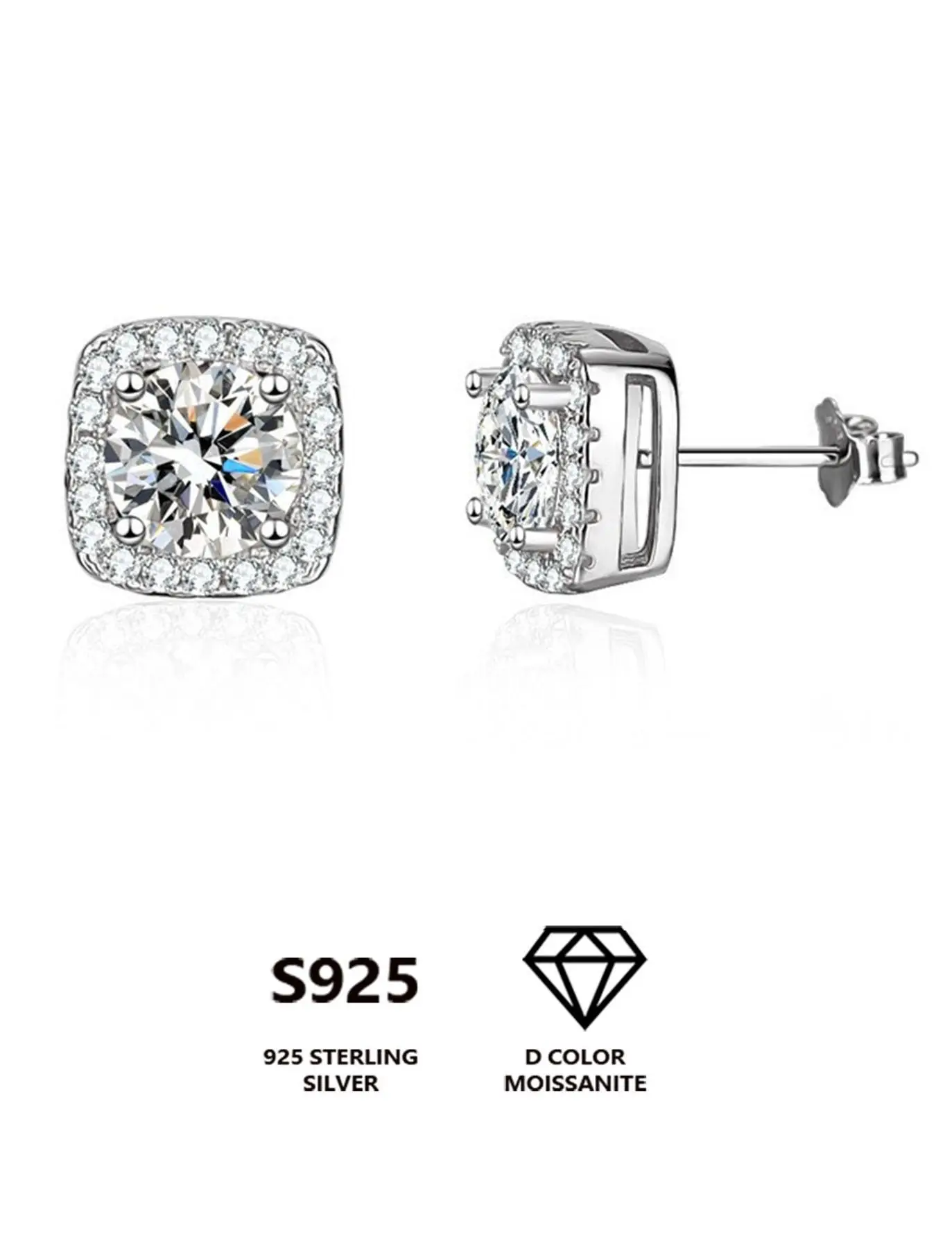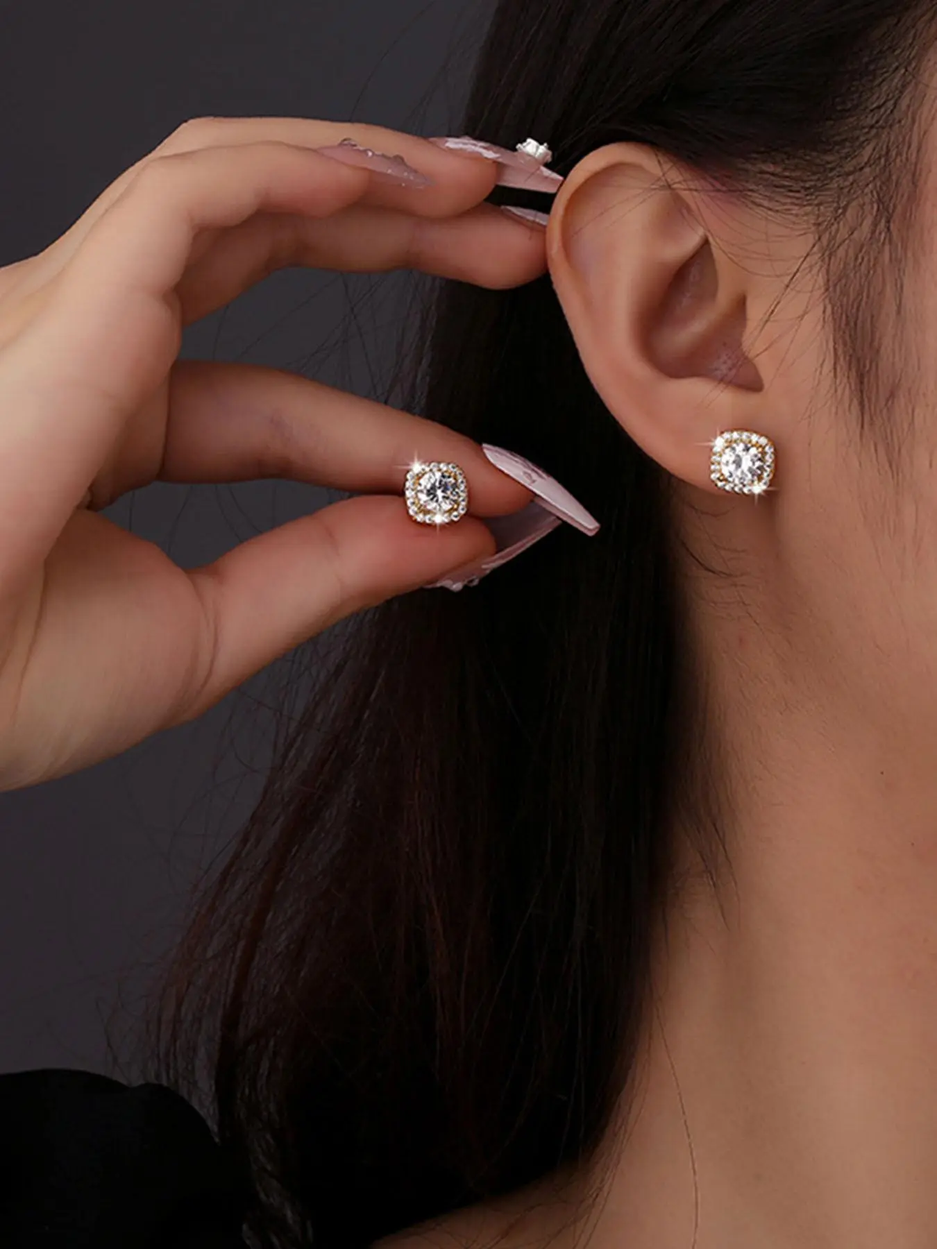 925 Sterling Silver Fashion Square Synthetic Moissanite Decorated Square Shaped Earrings, Elegant Matching Jewelry for Women, Daily Decor, Birthday Gift