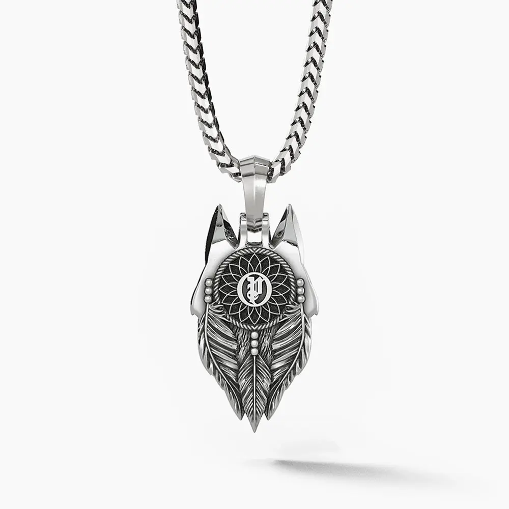 A born hunter and natural pack animal, this silver wolf pendant, named Alpha, is a powerful symbol of strength and family. This mens silver pendant is solid sterling silver and rhodium plated for maximum protection and shine. The solid silver pendant for men is designed, sculpted, and handcrafted by artisan jewelers, and the quality is second to none.