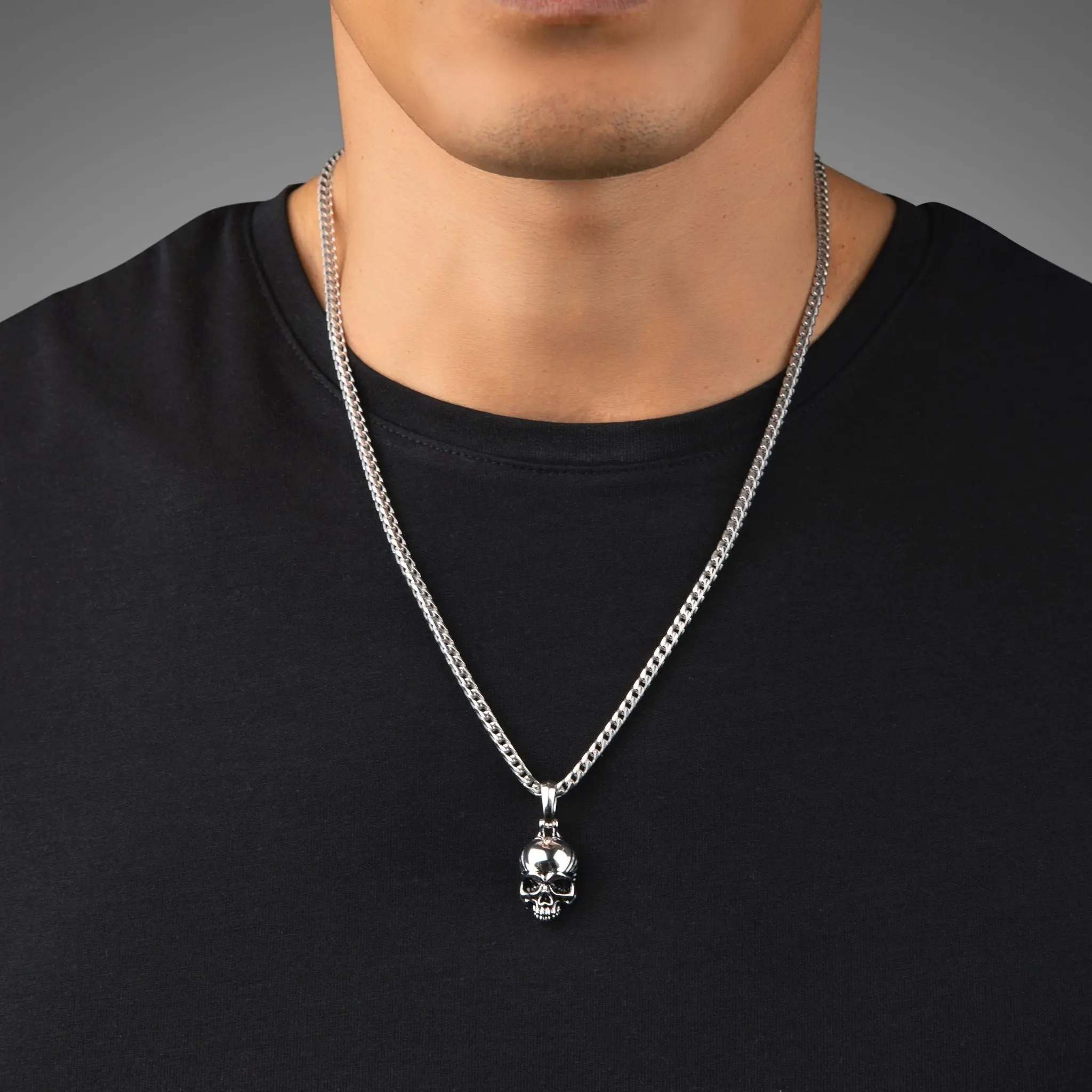 Large Size: The silver weight of the large pendant is 12 grams, and the large skull measures 17mm (0.67 inches) wide and 25mm tall (1 inch). The overall length, including the bail, is 39mm (1.53 inches).