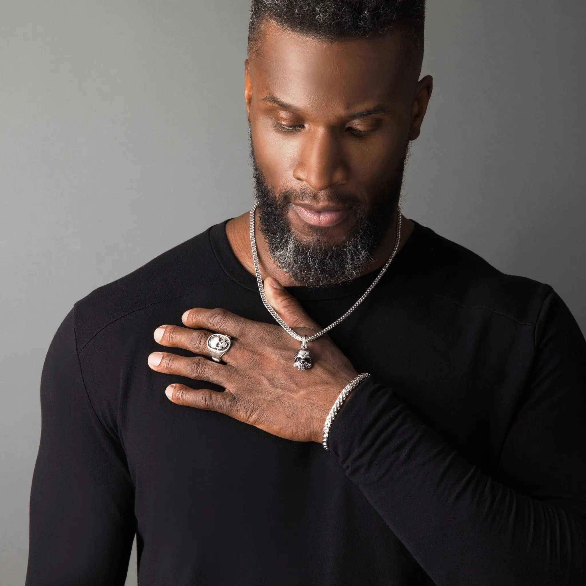 Your mens sterling silver pendant will include our world-class, luxury packaging set, including a matte black display box, protective leather pouch, and large polishing cloth.