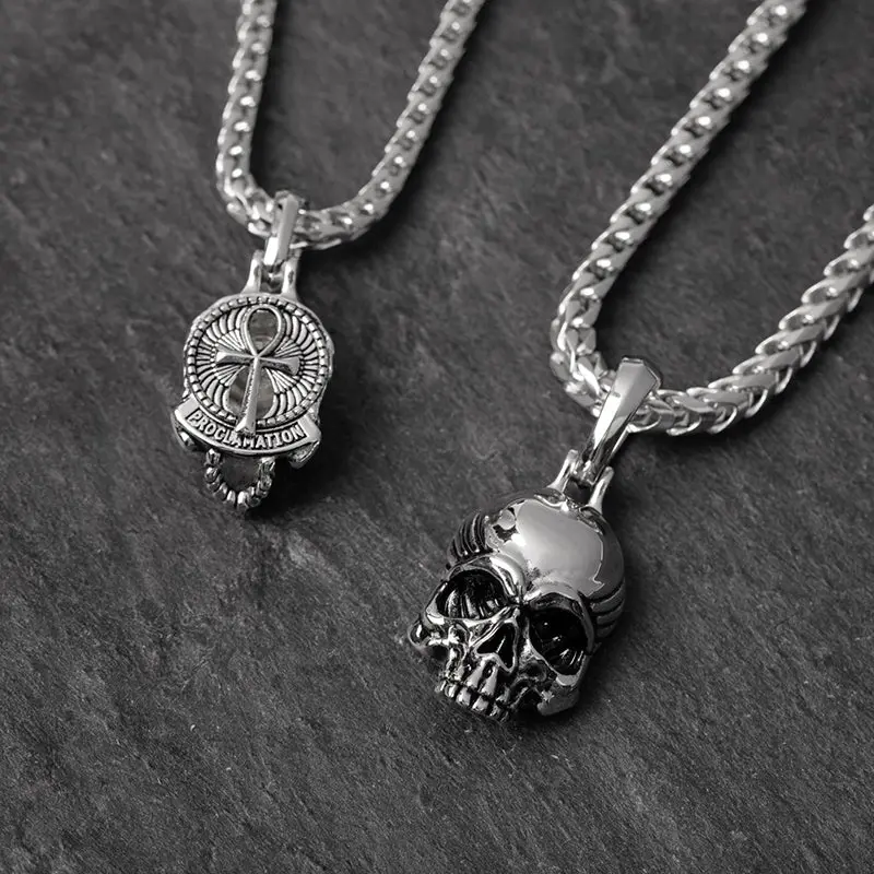 This silver skull pendant, named Vita, meaning "Life", is a powerful motif of strength, and is also a constant reminder that life is short. Our mens skull necklace also features the Ankh symbol, presented on the back of the pendant, means "key of life" and is an ancient Egyptian hieroglyph representing eternal life.