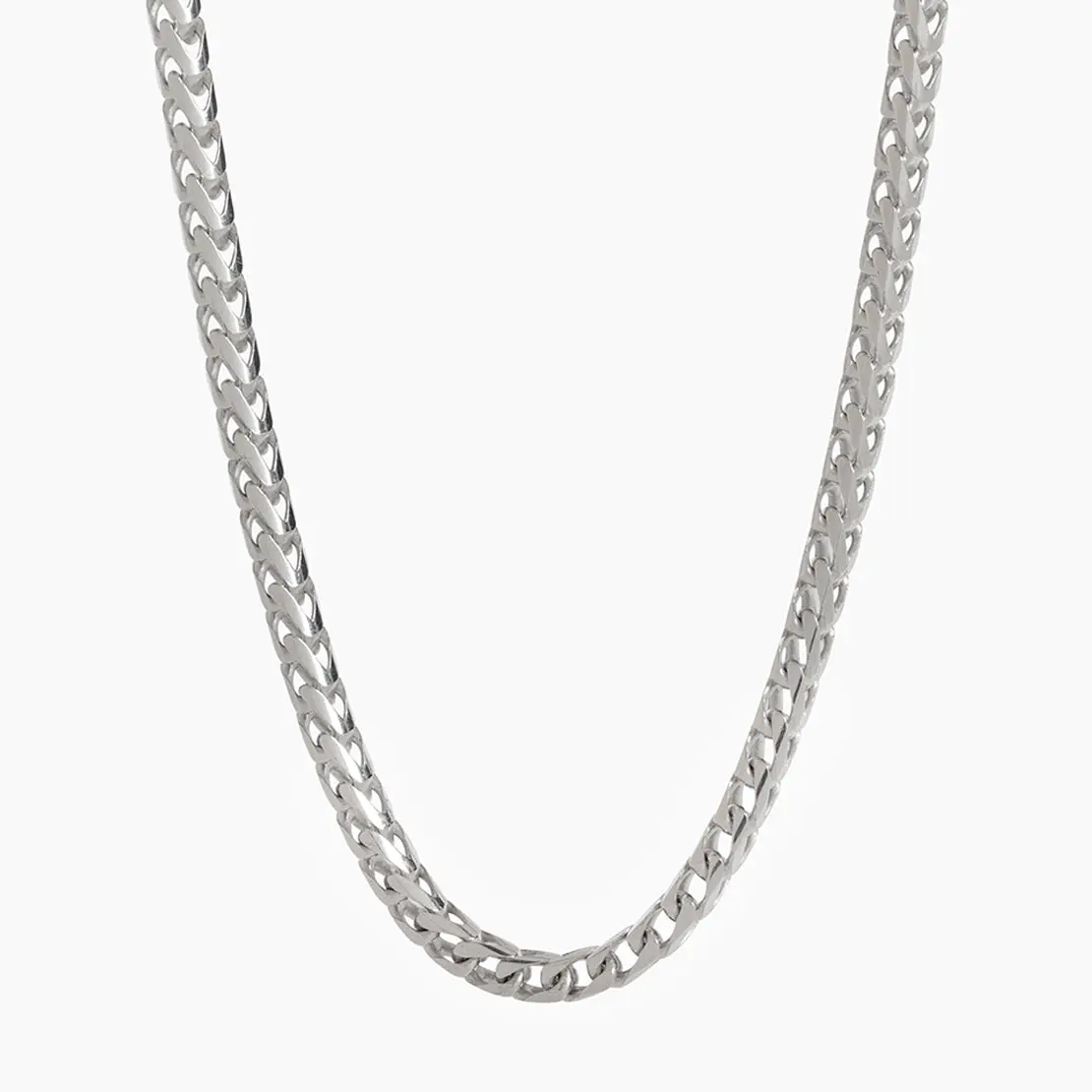 This 3.5mm silver franco chain is crafted in Italy in solid sterling silver and rhodium plated for maximum protection and shine. The luxurious silver chain for men is stamped with the .925 quality hallmark symbol for quality guarantee.