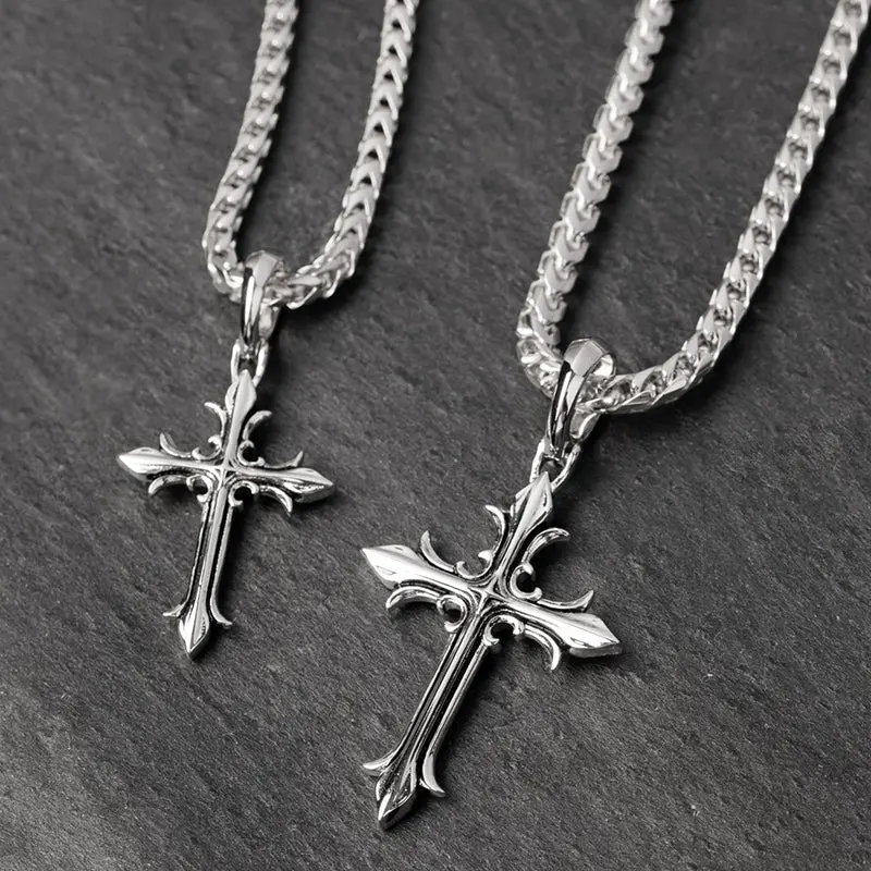 Large Size: The weight of the large silver pendant is about 7.5 grams. The cross measures 27mm (1.1 inches) wide and 40mm (1.57 inches) tall. The overall length, including the bail, is 54mm (2.1 inches).