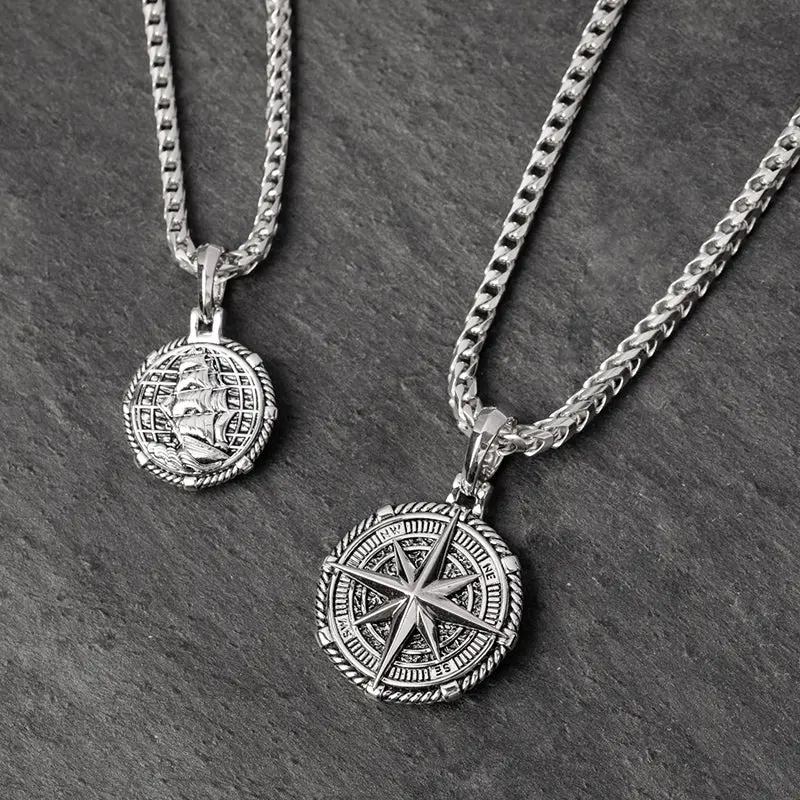 This compass pendant, named Voyager, was created for those who seek adventure, who beat new paths and never settle for the ordinary. The front features the compass rose while the back showcases a great ship sailing the open water. Wear our mens compass necklace as a symbol of your love for adventure.