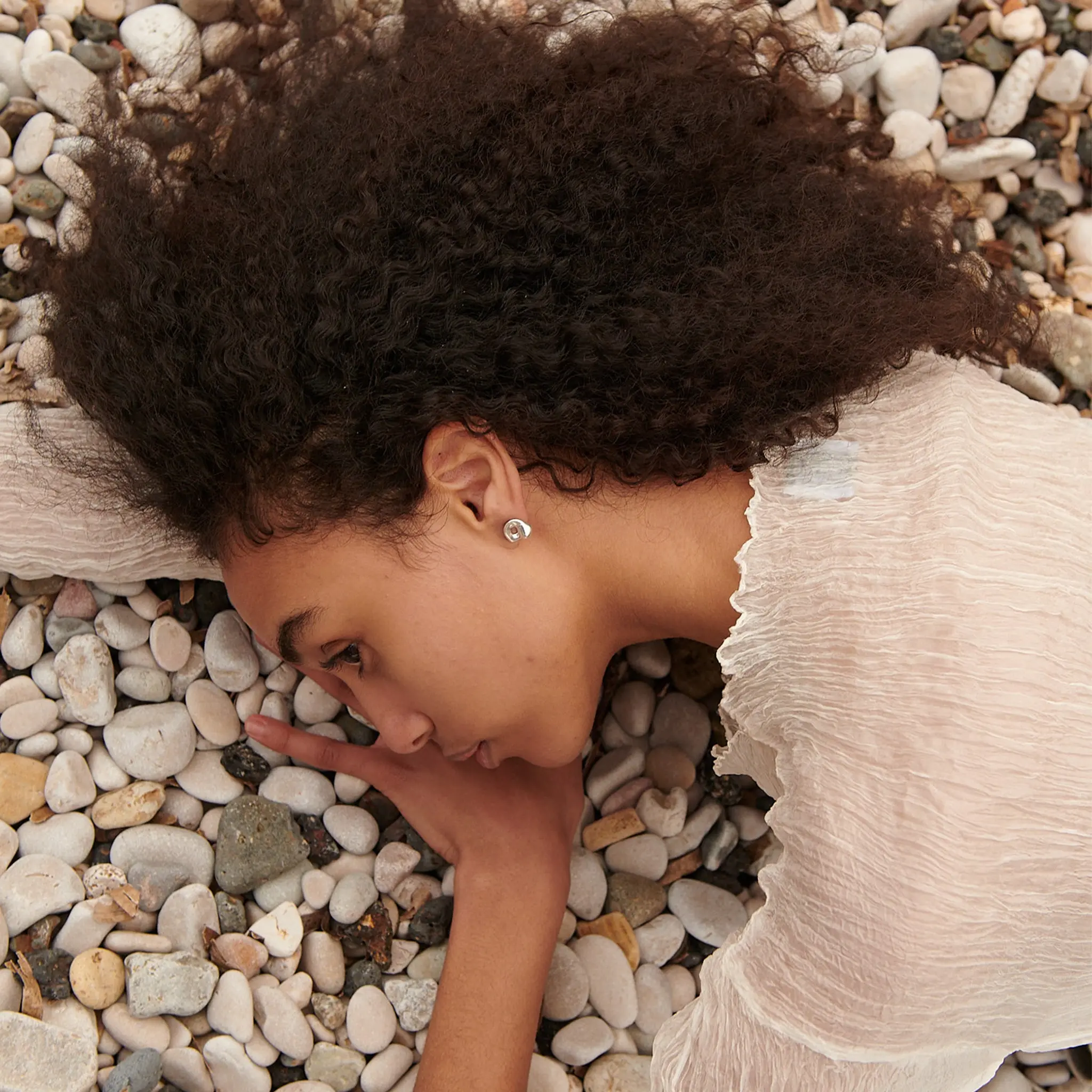 Measures 7/16" wide and 3/8" longSterling silver postHandmade in NYC