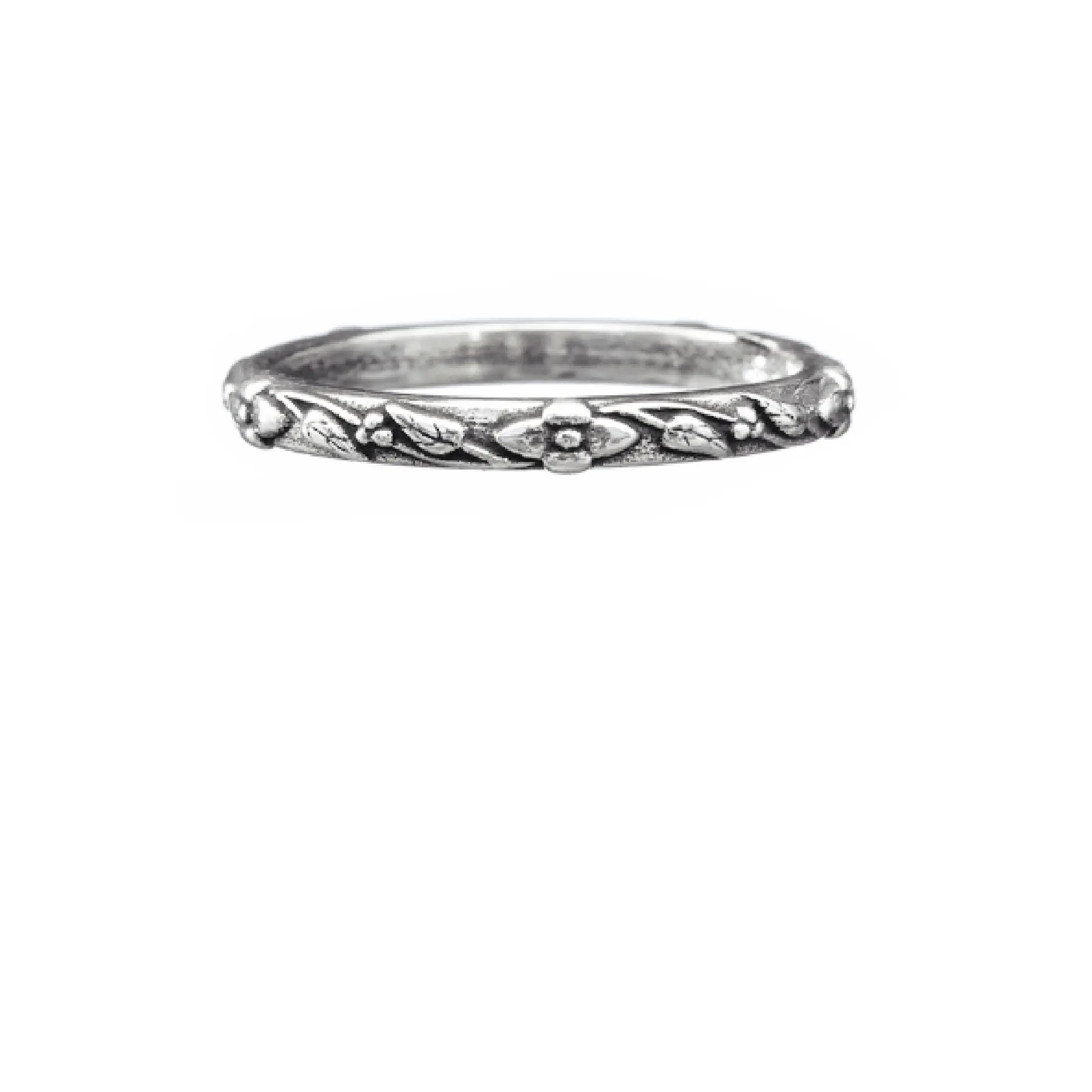 Flower and Vine Ring - Embossed with a flowered vine motif, this .925 sterling silver ring looks lovely when worn alone or grouped with any of our Nomadés rings. Available in sizes 5.0, 6.0, 7.0, 8.0, and 9.0. Please select your preferred size above.