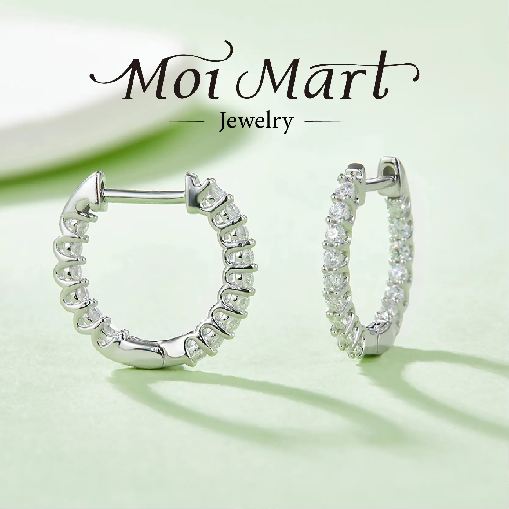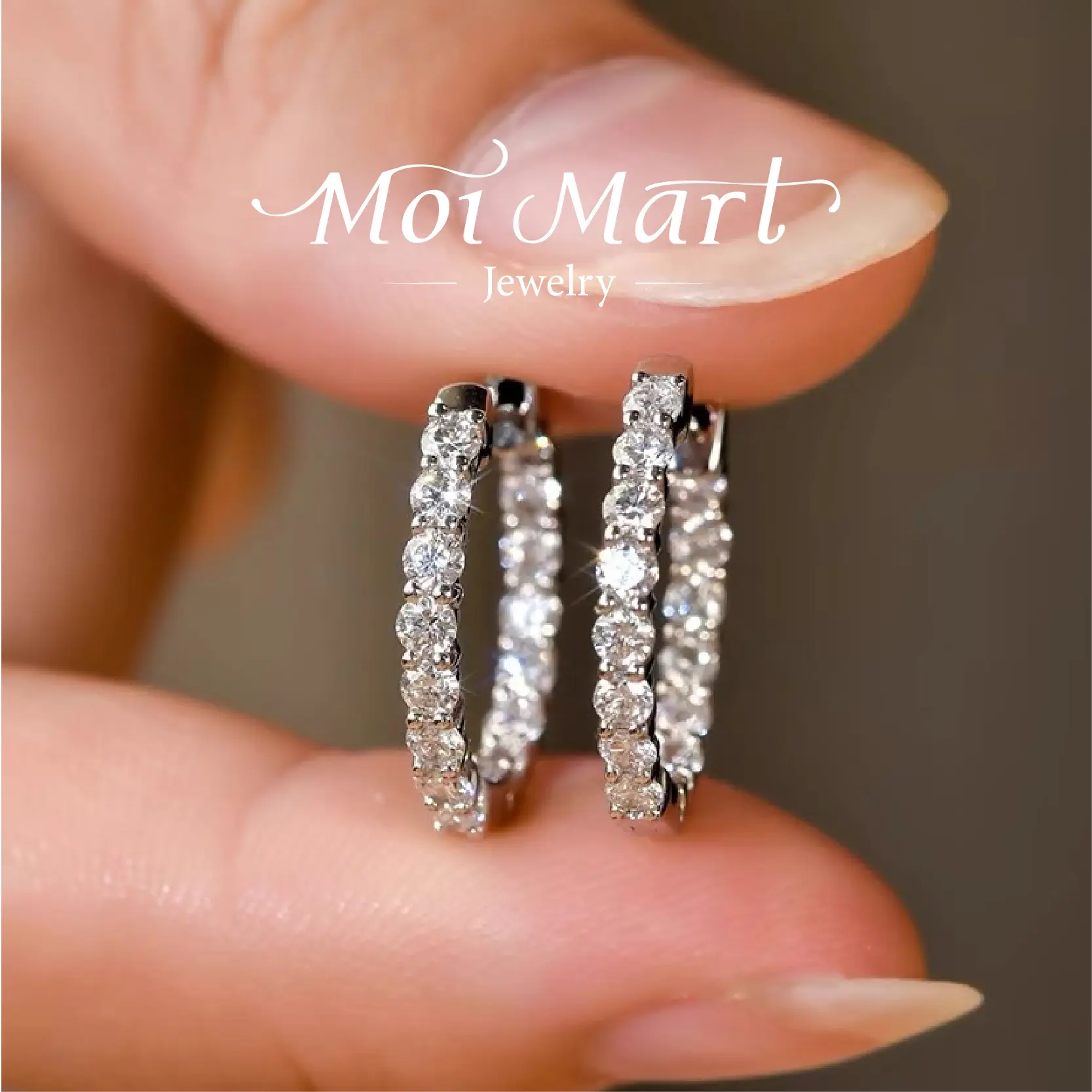 MOI MART Elegant Pave Set Synthetic Moissanite Earrings - Unisex Hoop stud Earrings in S925 Silver - Hypoallergenic and Sparkling Jewelry Daily Wear
