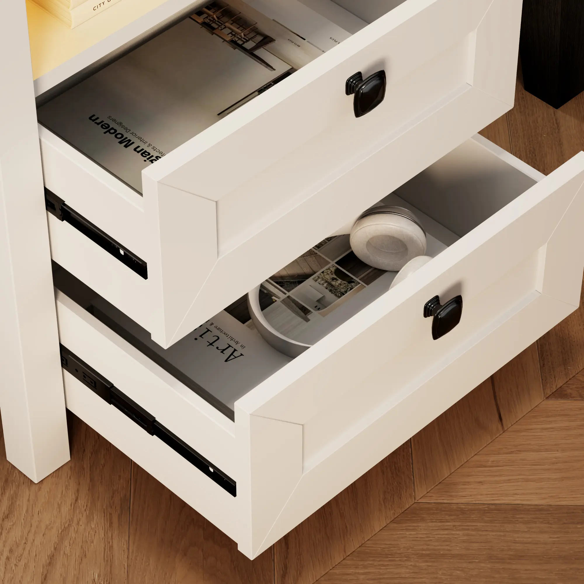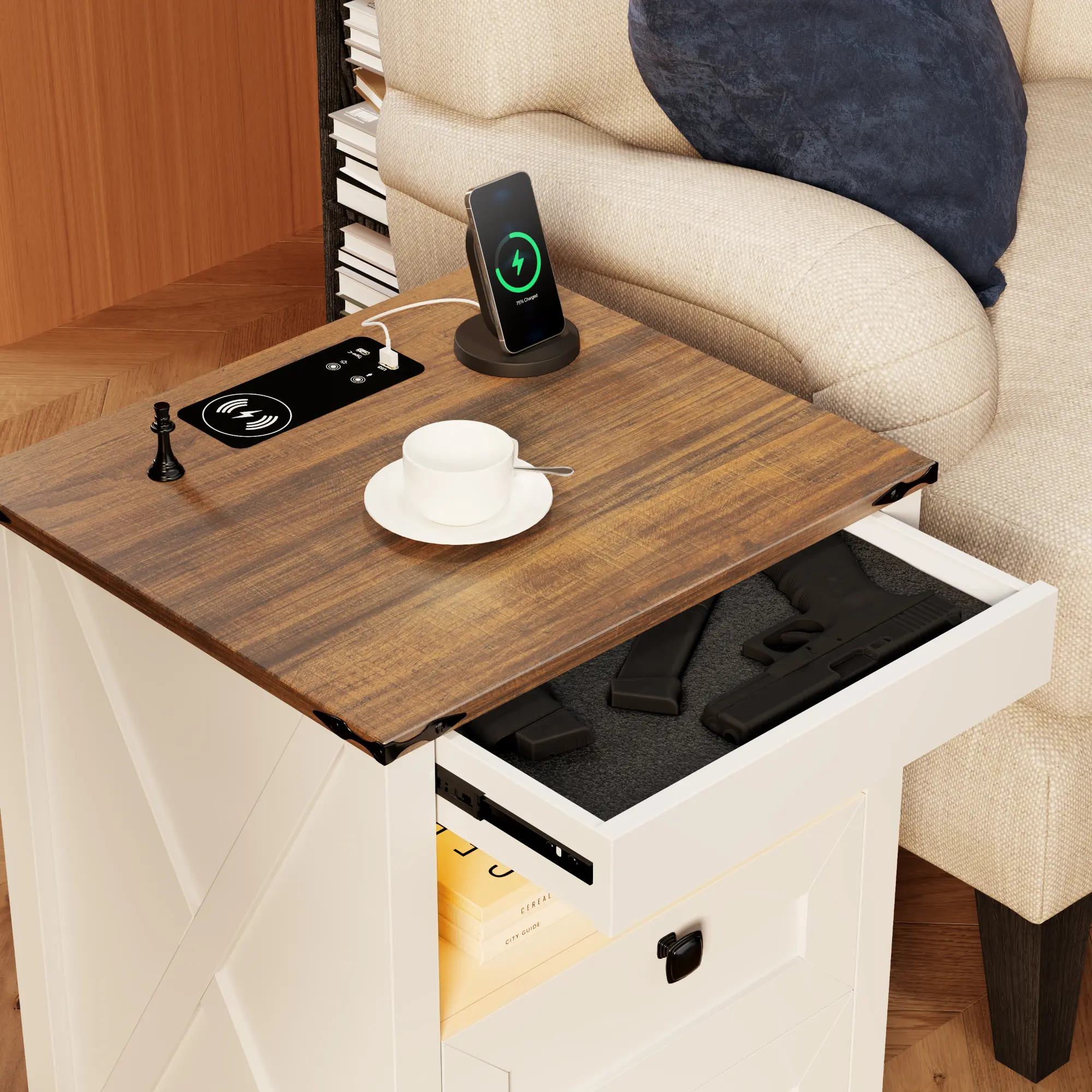 ·【Hidden Lockable Gun Drawer】This bedside table comes with a hidden lockable gun safe drawer, providing you with a secure storage space for your valuables. Keep your belongings safe and easily accessible with this built-in feature