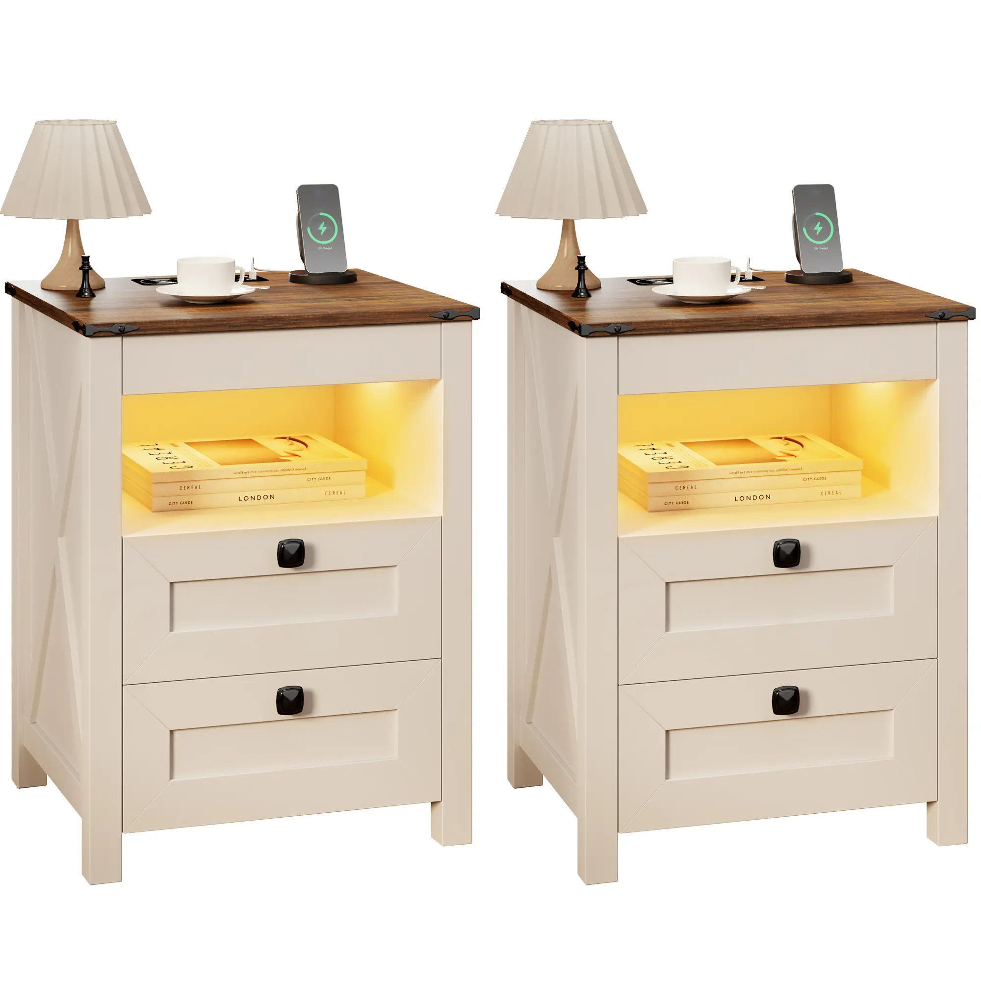 ·【Human Sensor 3 Color LED Lights】Farmhouse night stands equipped with a human sensor, automatically detects movement and turns on the LED lights(3 colors for your choice), Whether you prefer a white, warm or yellow light, you can easily adjust the color to create the perfect ambiance for your space