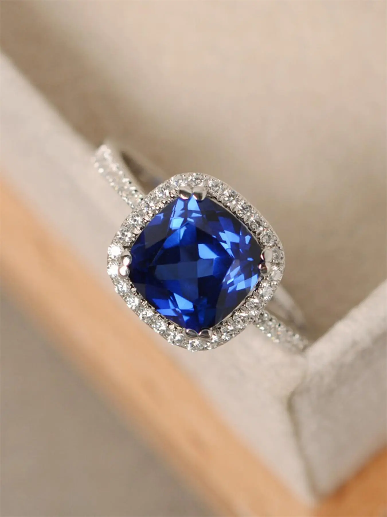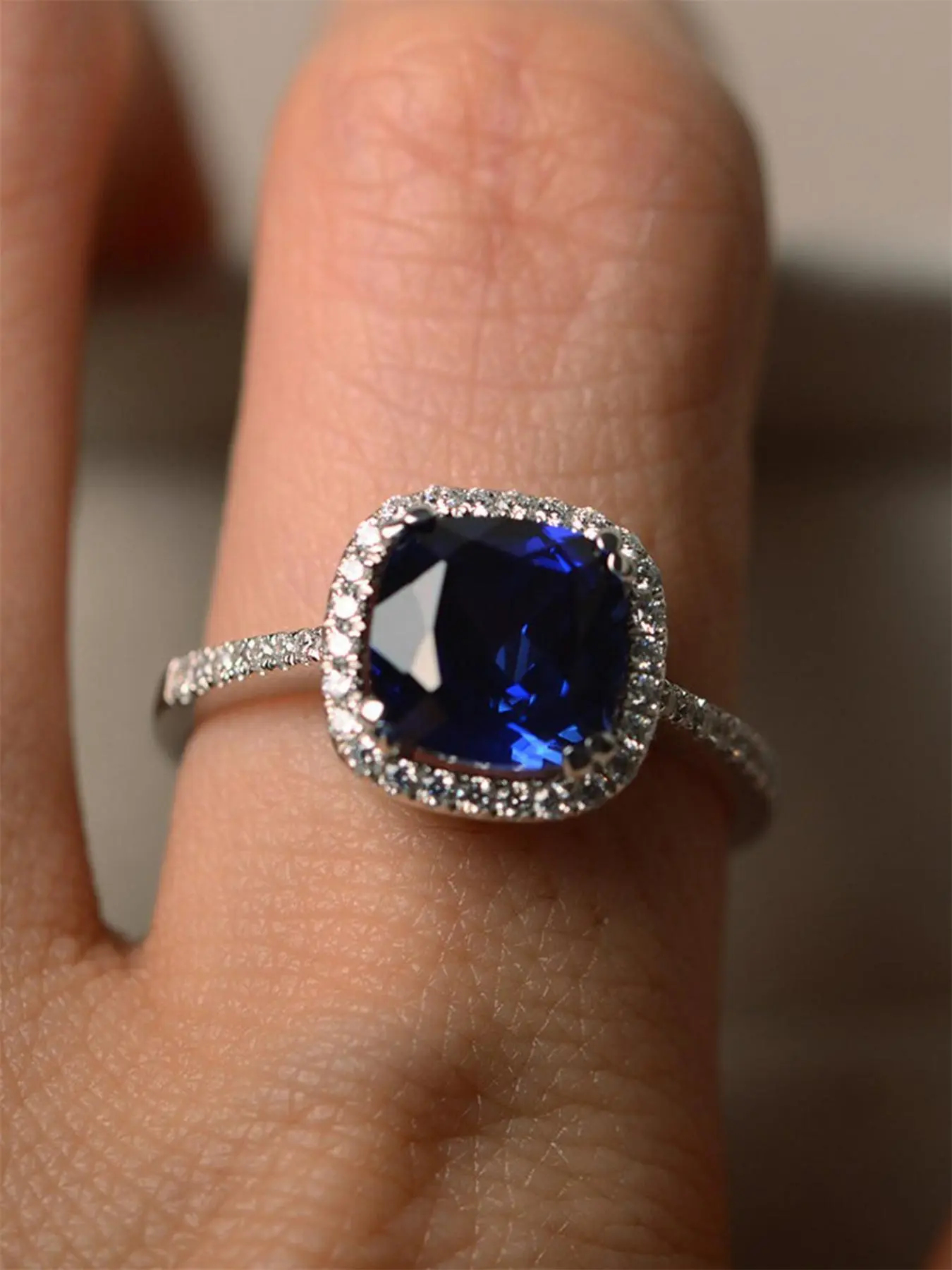 How beautiful 😍  Blue is my favorite color 💙 this ring is accented with tiny rhinestones & is 9.25 sterling silver. Gorgeous ring! The price is perfect too. I left the link in the orange shopping cart. Click on it & add to Cart.  #rhinestones  #jewelry  #rings  #sapphire  #rhinestonejewelry