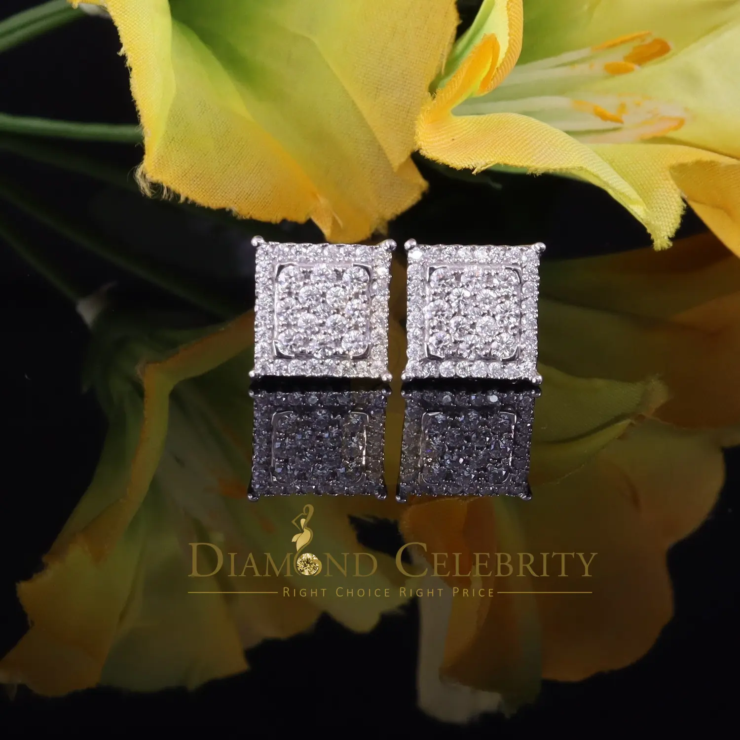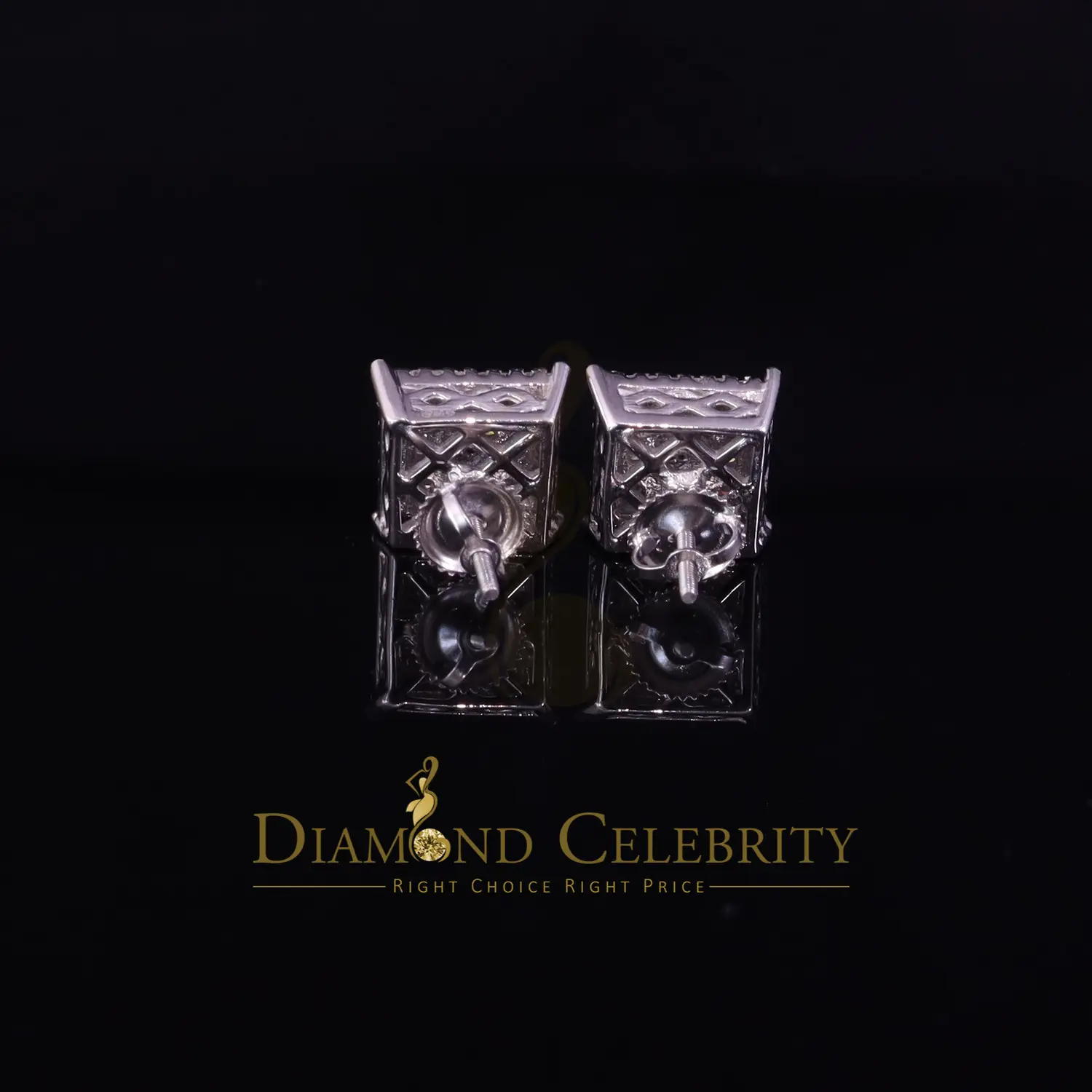 Diamond Celebrity's Men's/Womens 925 Silver White 1.25ct VVS 'D' Moissanite Stone Square Earrings
