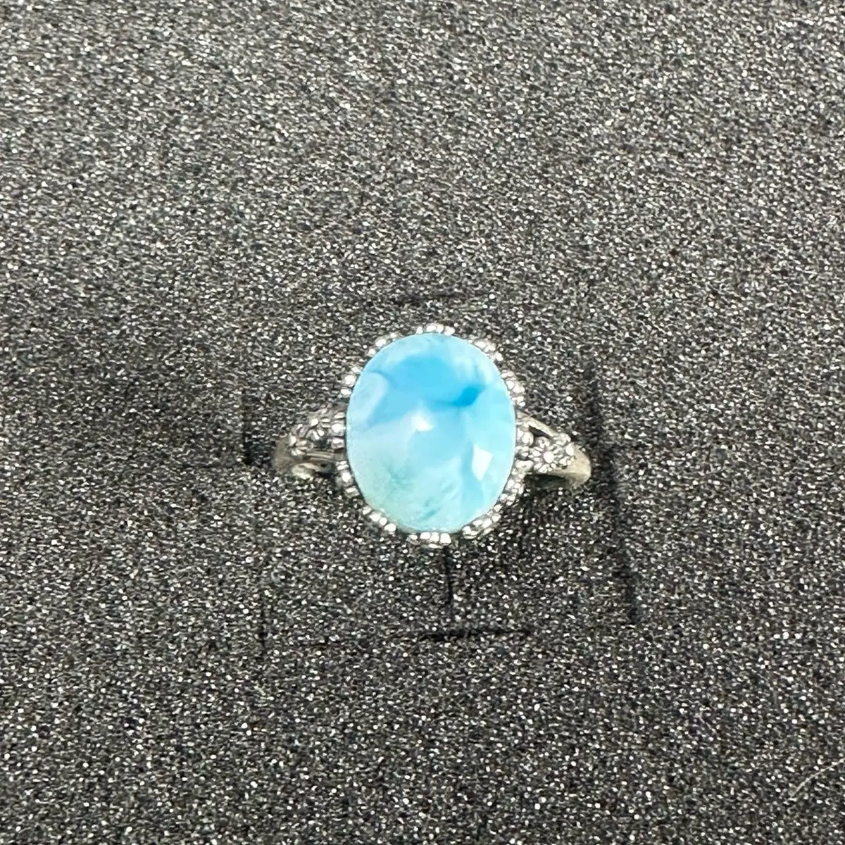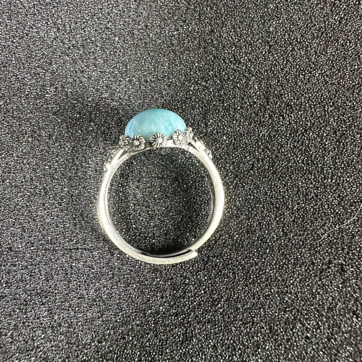 Beautiful baby blue oval Larimar S925 silver adjustable ring