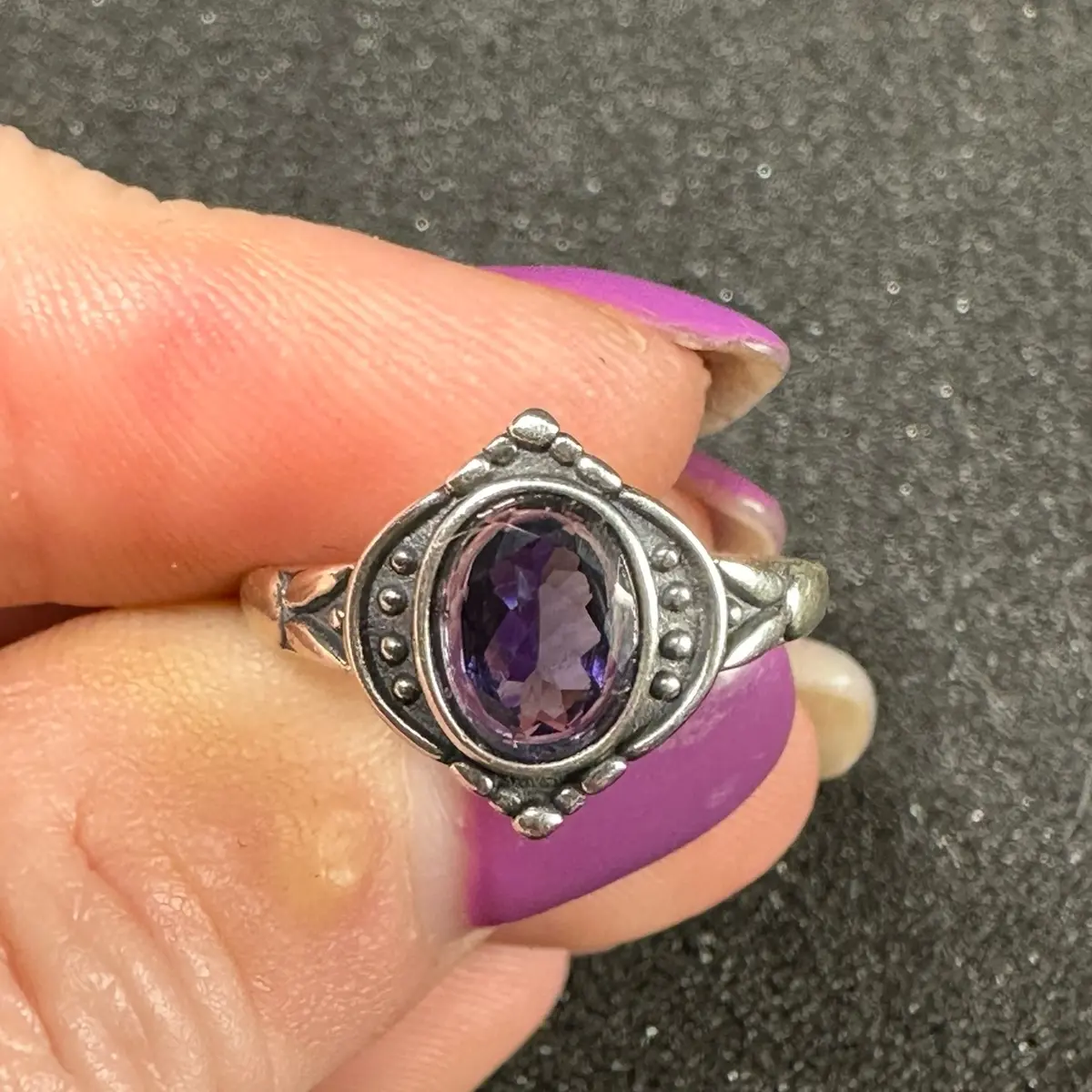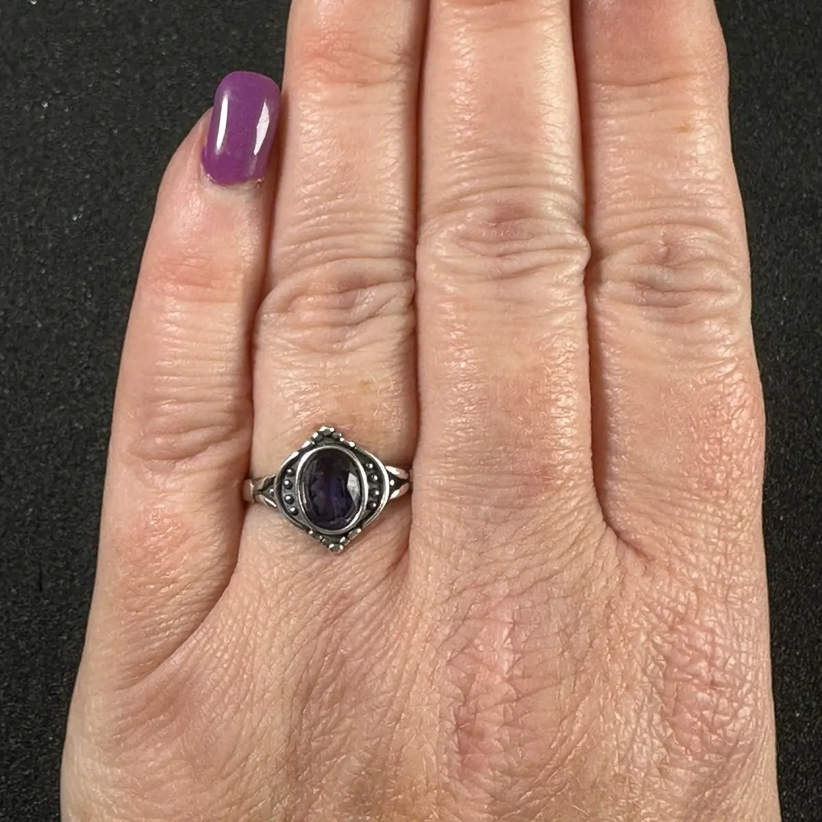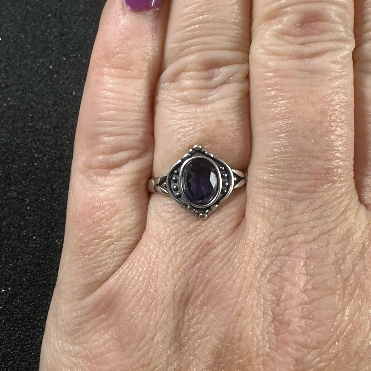 Metaphysically,Cordierite is a highly spiritual crystal that can aid in spiritual development and foster clairvoyance. It is also known to be a soothing crystal that can help soothe you to sleep and/or stay asleep. The oval faceted design of the ring adds a unique and elegant touch to the overall look of the ring.