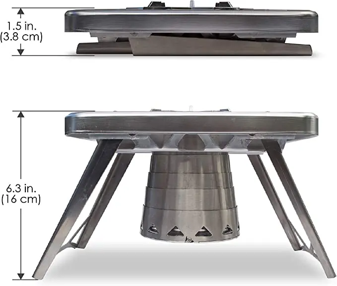 nCamp’s portable wood burning stove is designed as a backpacking stove. It’s compact, durable, and safe to use. Just unfold the legs, expand the combustion chamber, and light it up! It’s constructed with vent holes to optimize airflow, providing a fire hot enough to cook, boil water, or roast marshmallows.