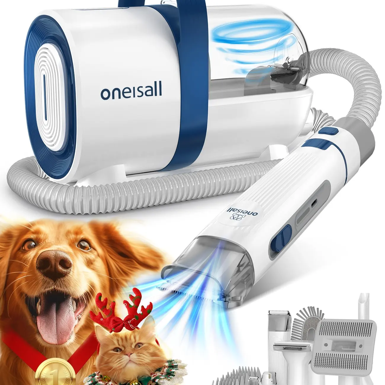 【7 in 1 Pro Pet Grooming Kit,Keep the House Tidy】oneisall pet grooming kit with vacuum make home grooming easy.The grooming brush and the deshedding tool gently remove loose hair and making pet hair shiny and smooth while eliminating tangles. Electric clipper, dog paw trimmer and dog nail grinder provides excellent cutting. Give your pet a best grooming experience. Nozzle head and Cleaning brush can be used for collecting pet hair falling on the carpet, sofa and floor.