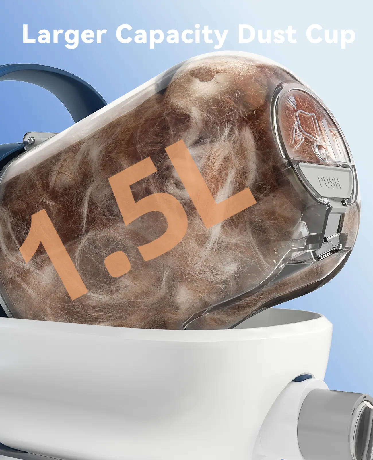 【Easy Empty Dustbin & Easy to Store】With a detachable 1.5L dust box, 25% more capacity than others,easy-to-empty, do not need to empty often during grooming. The removable dust cup is equipped with an easy empty lid for quick, mess-free empty after cleaning.The device is highlighted with space-saving feature, we provide storage boards and bags for easy storage.
