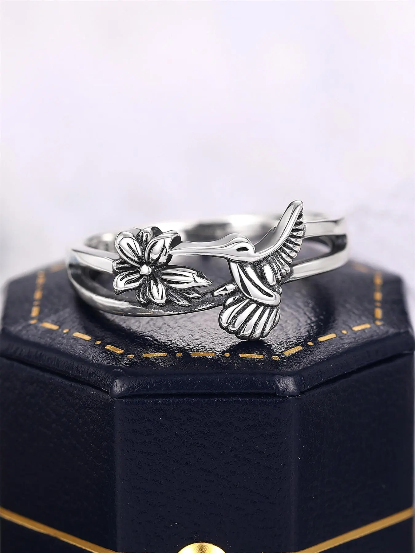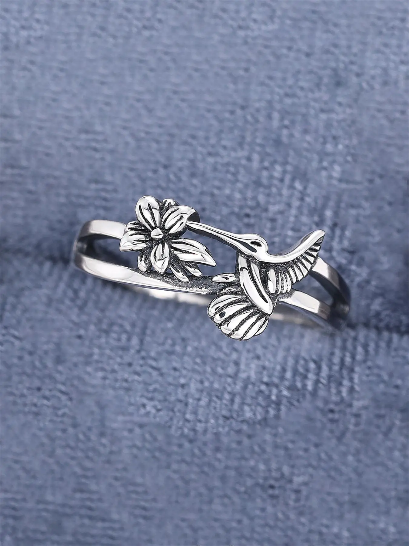 925 Sterling Silver 925 Sterling Silver Cute Bird Design Ring, Wedding Engagement Anniversary Jewelry for Party, Daily Clothing Decor, for Birthday Gift Hummingbird Ring
