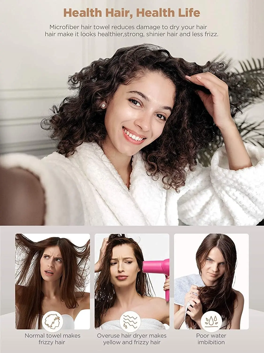 ·Gentle on Hair: The soft and breathable microfiber fabric reduces friction between hairs while drying. This helps to prevent frizz and split ends caused by rough towel drying.
