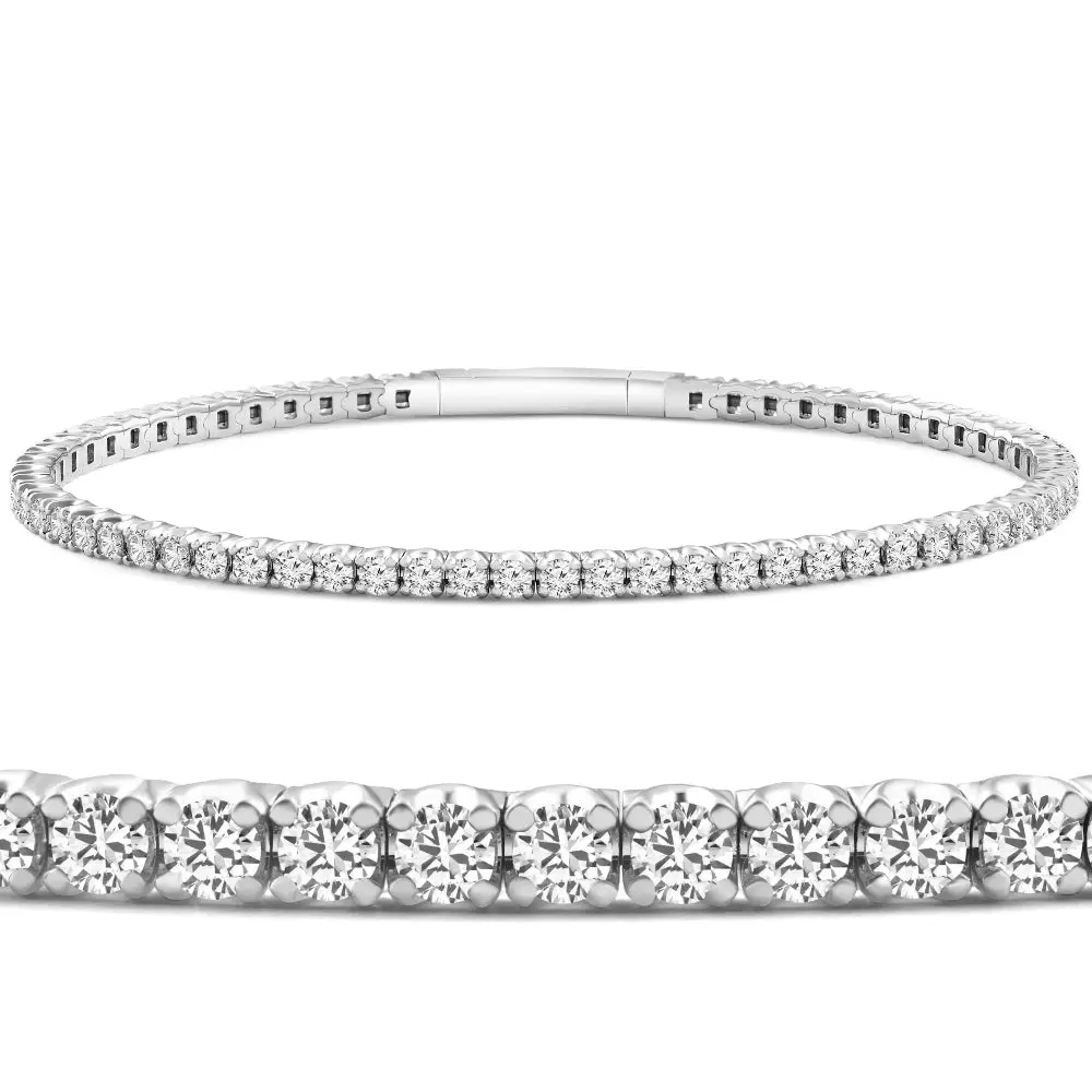 3Ct Round Diamond Flexible Oval Bangle Women's Bracelet 14k White Gold Lab Grown