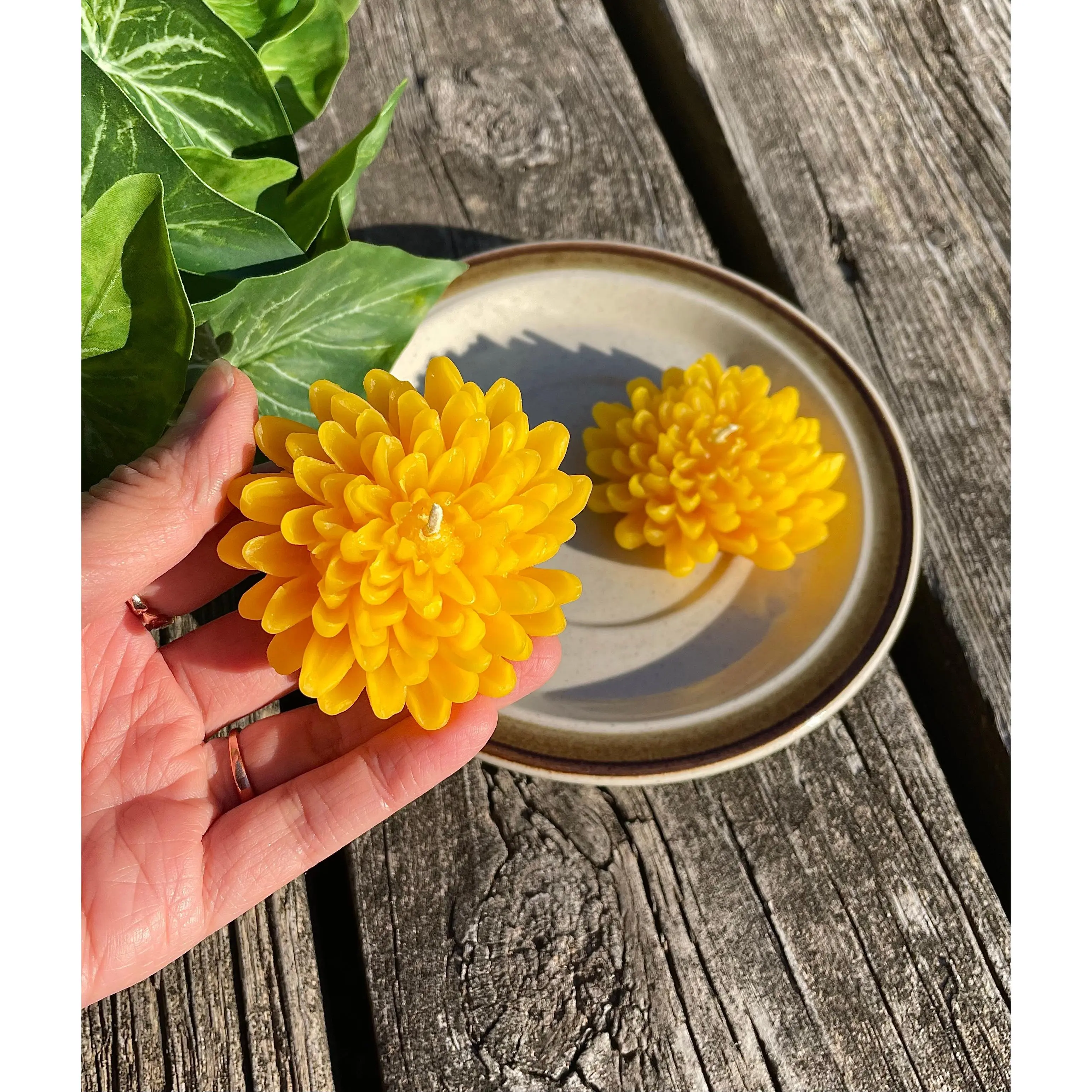 Set of 2 chrysanthemum candles - 100% pure beeswax - 2.5”