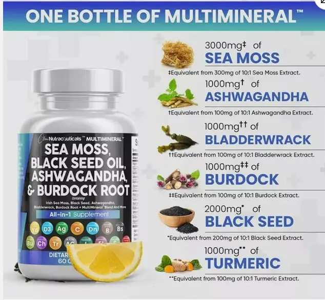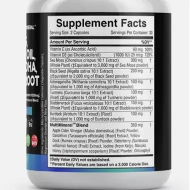 ·Powerful ingredients: Our supplement includes Burdock root, Ashwagandha, Black Seed Oil, Irish Sea Moss and many more. These top-quality components work together to provide multiple health benefits.