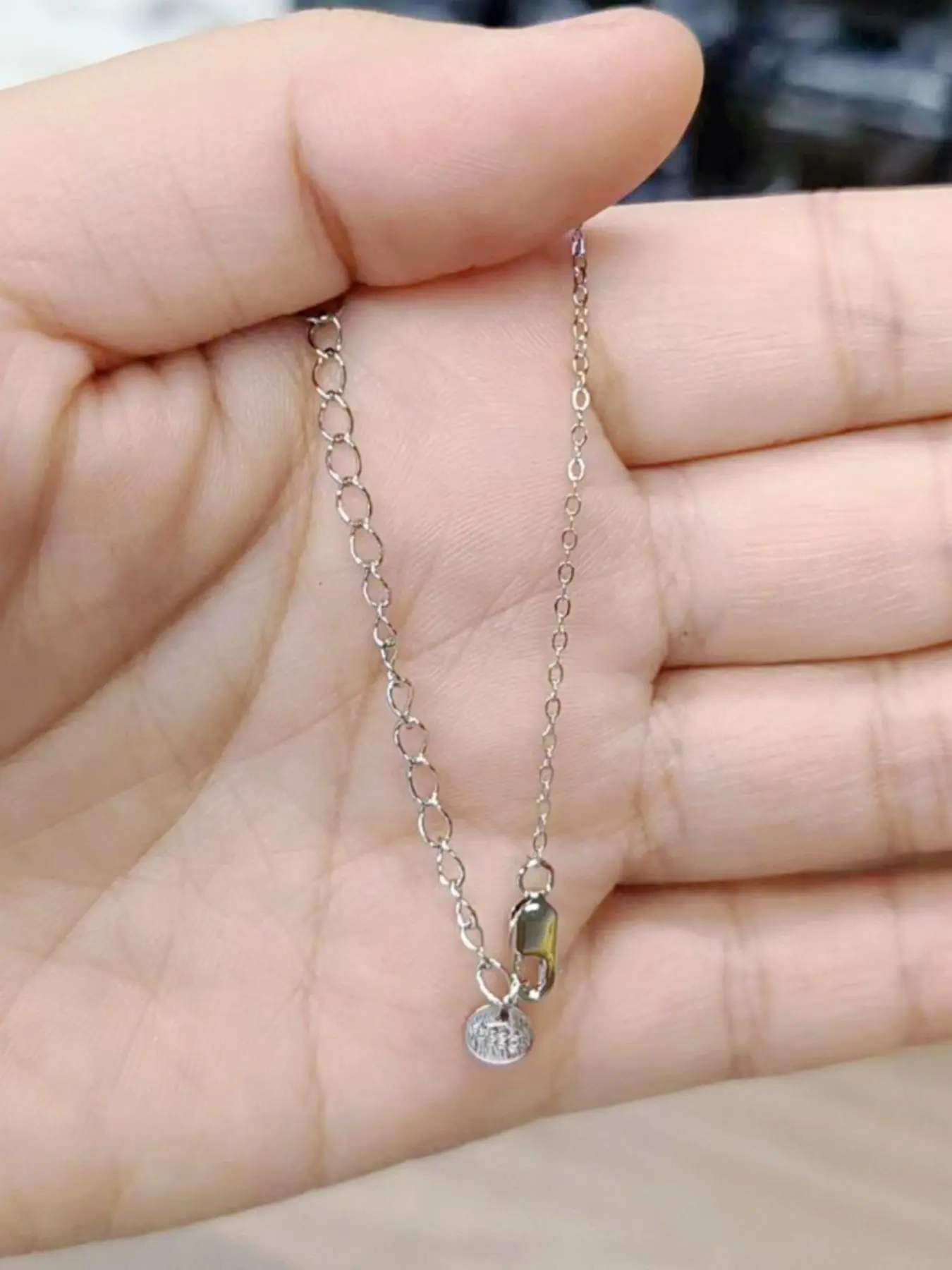 very cute and shiny! the adjustable pull thing is sooo smooth and easy to pull. unlike other bracelets with the same pull thing, this one stays in its place after you pull it. get for your mama! :))