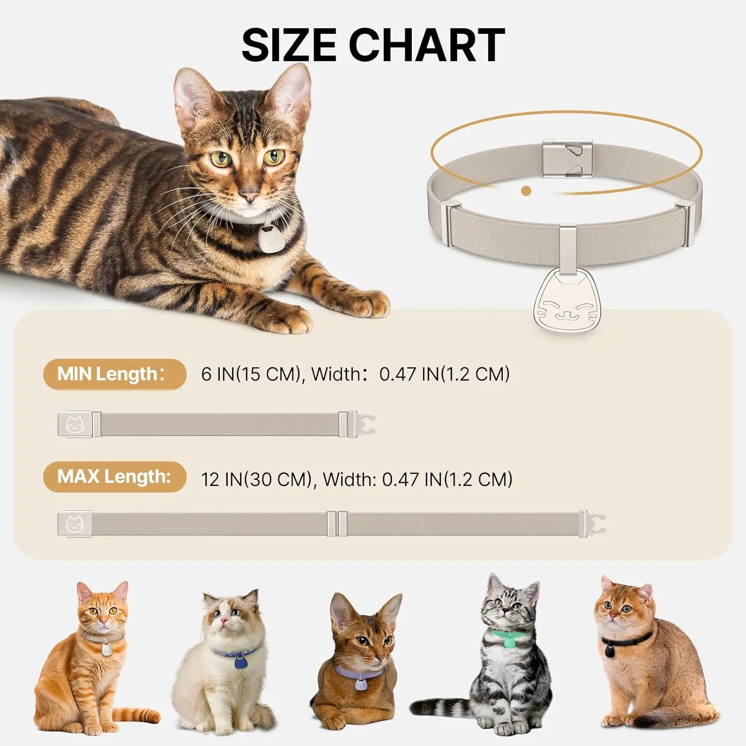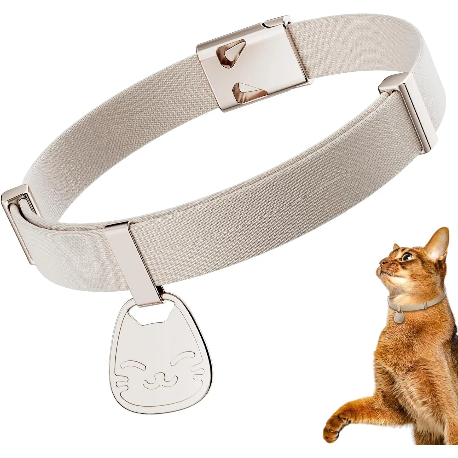 Cat Collar with Name Tag Breakaway: Kitten Collars for Girl Boy Cats with Writable Name Tags, Ultra Soft & Elastic Adjustable (6"-12") Cat Collar with Break Away Safety Buckle, Khaki