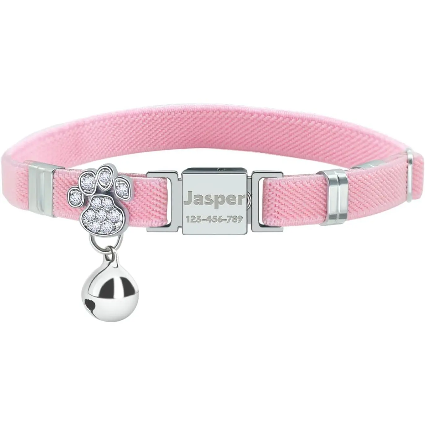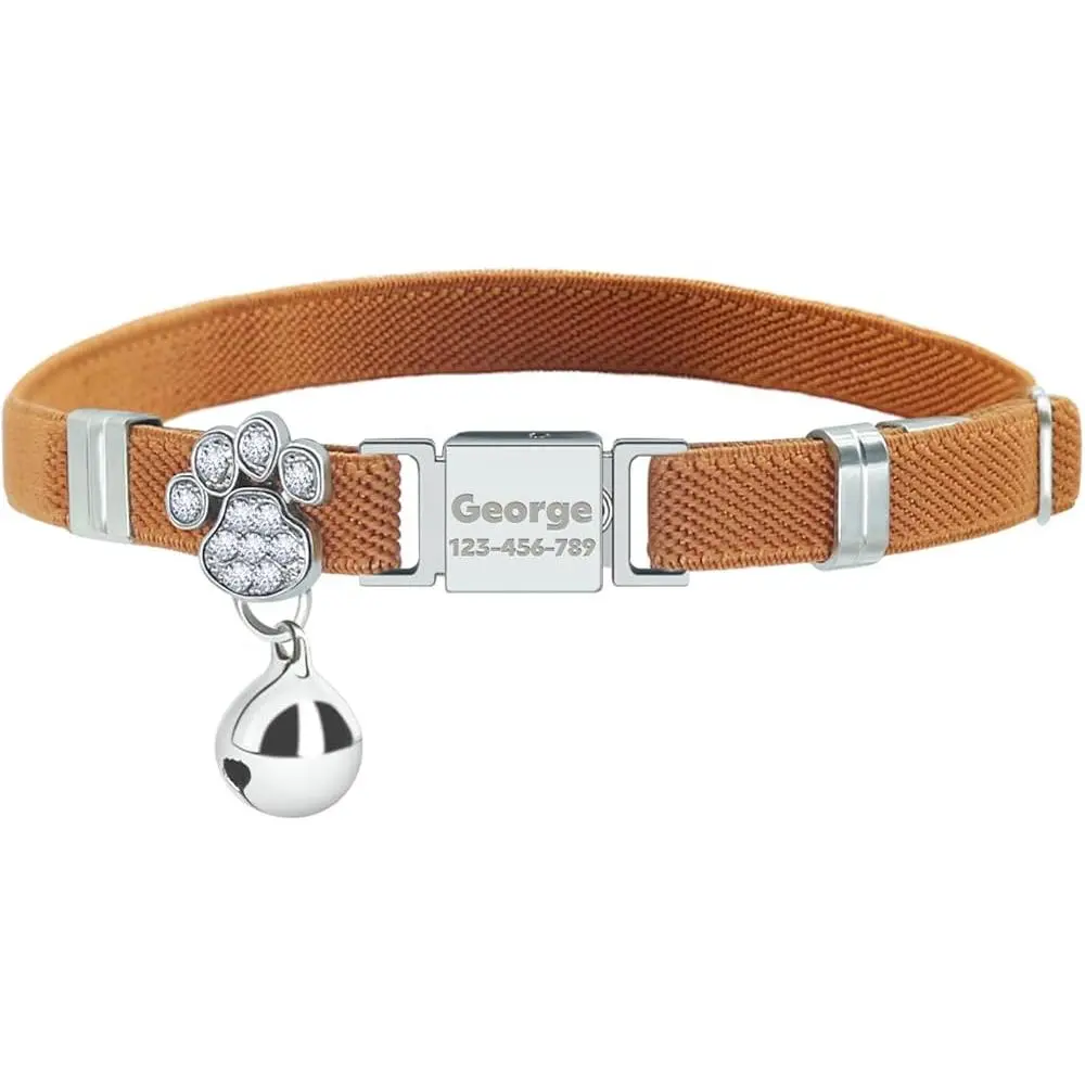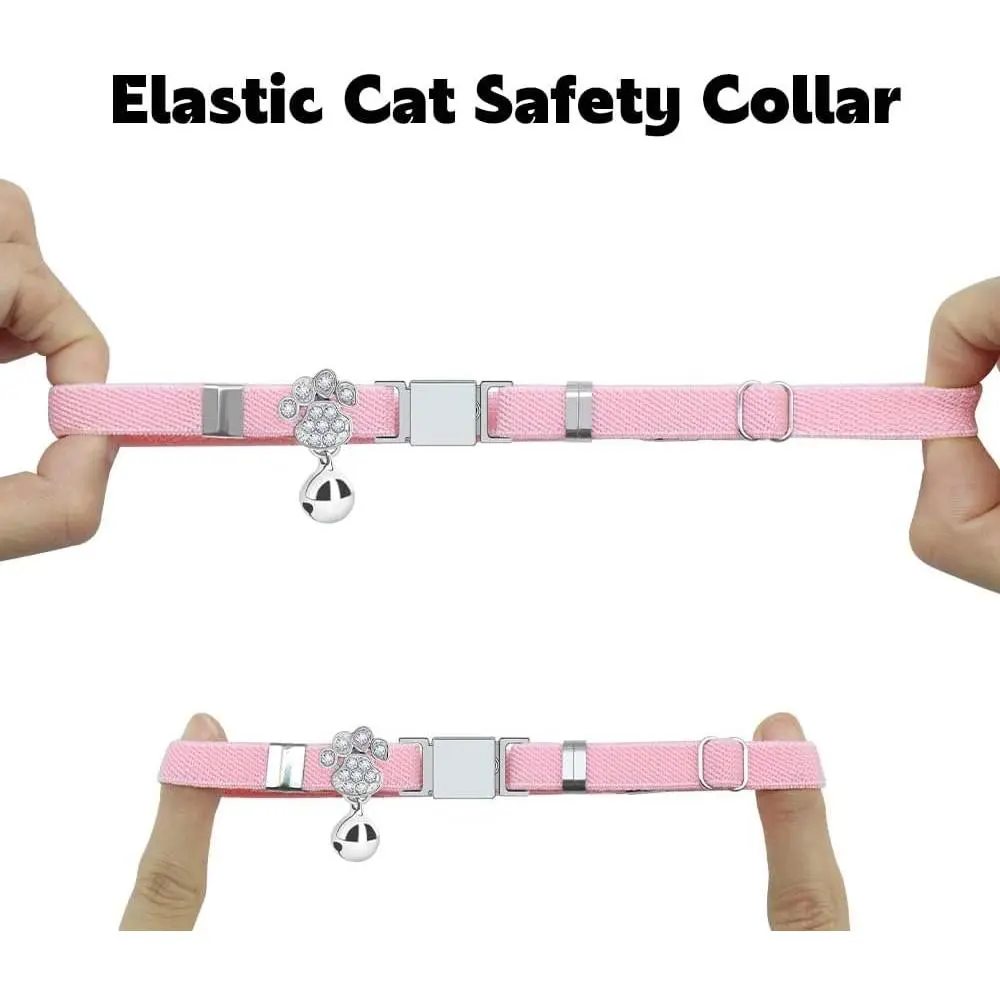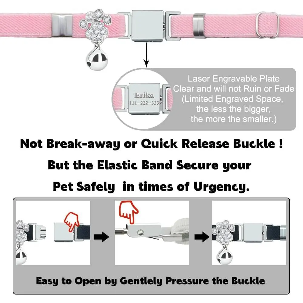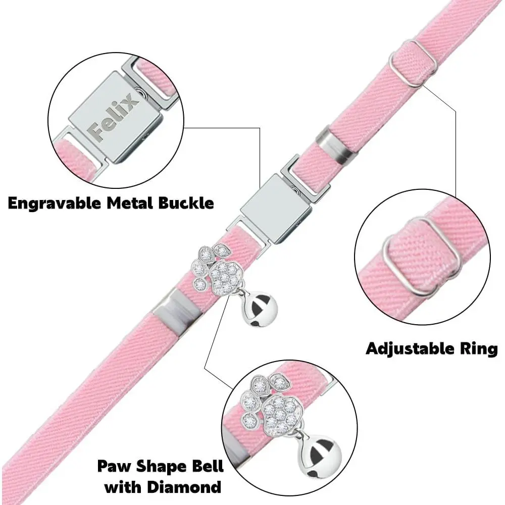 Personalized Safety Elastic Cat Collars with Bell,Laser Customized Stretch Kitten Collars for Girls Boys Cats-Pink