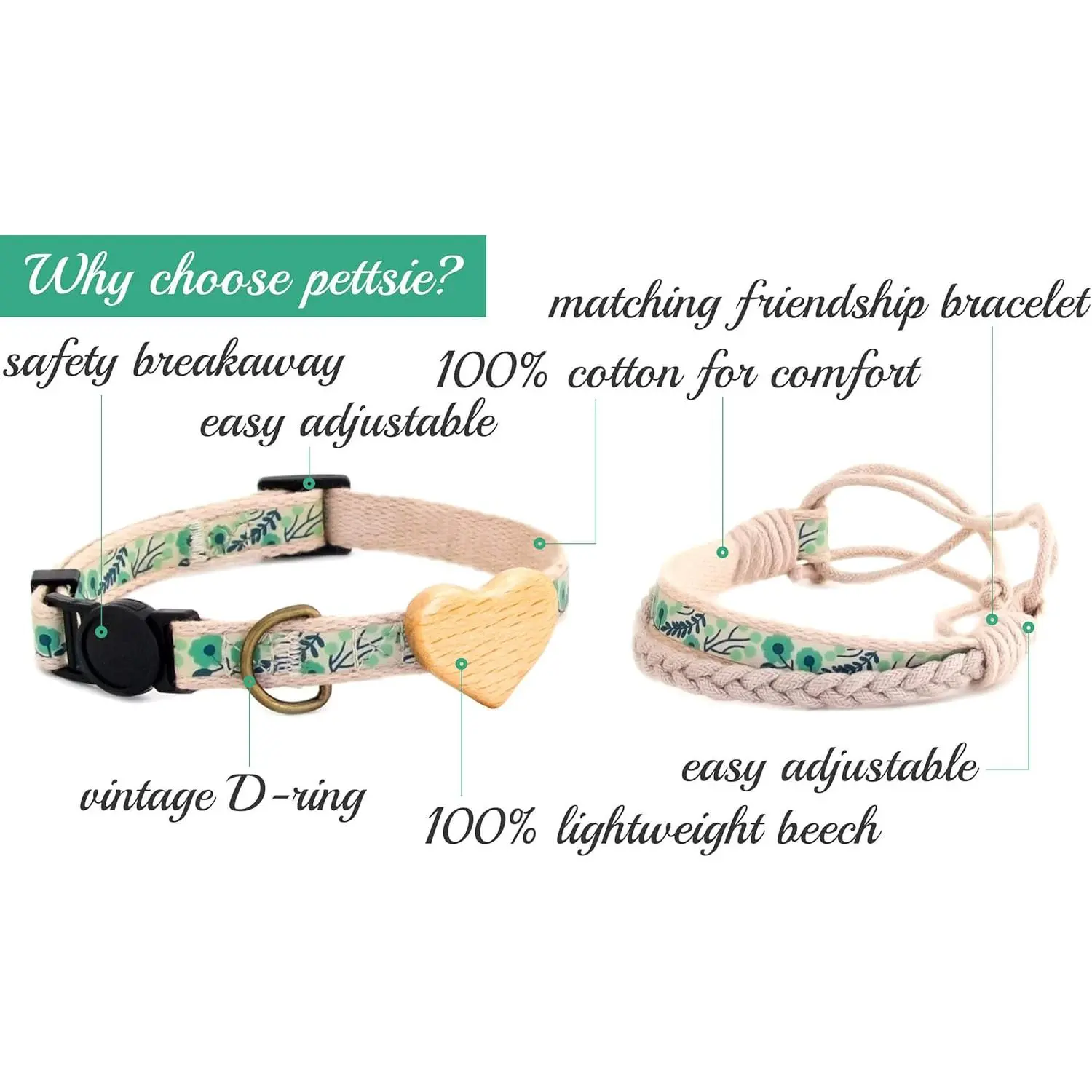 Crafted from pet-friendly materials, these collars come with a matching friendship bracelet for you, symbolizing the strong bond with your furry friend. Packaged in an elegant gift box, Pettsie is the ultimate blend of style, sustainability, and the joy of the human-pet connection.
