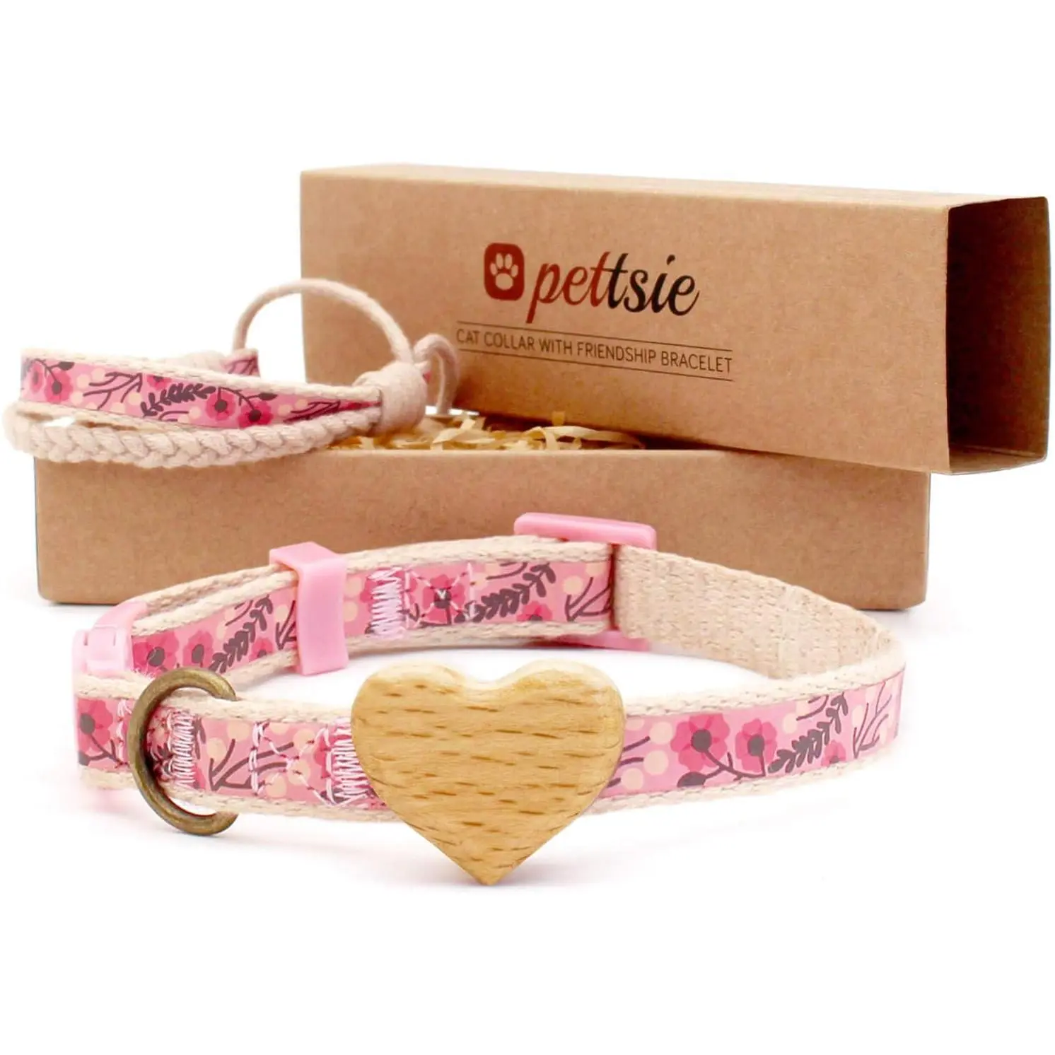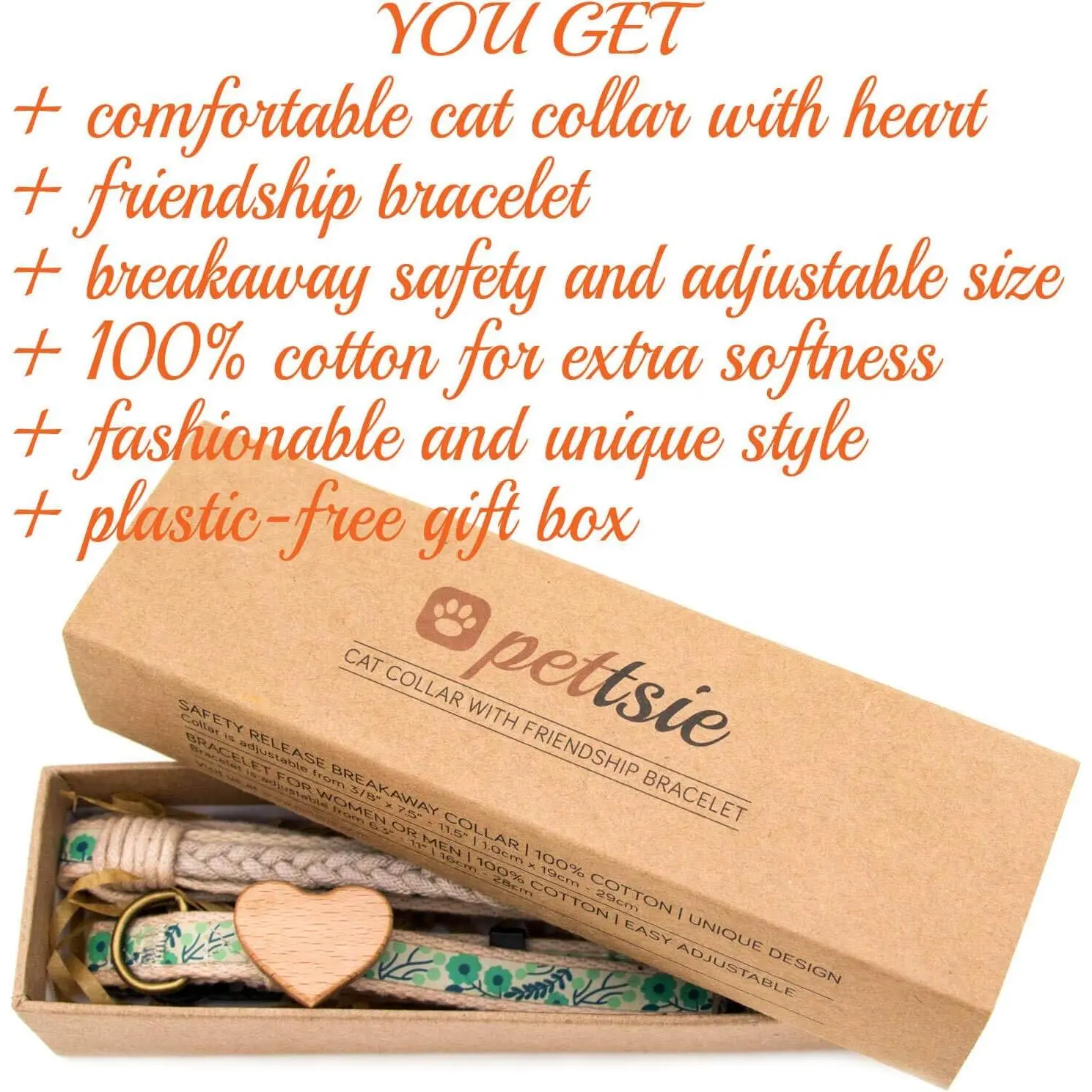You will receive a set of a wooden heart cat collar and a hand bracelet tastefully packaged in plastic-free gift box. It is a wonderful gift idea for all cat lovers.