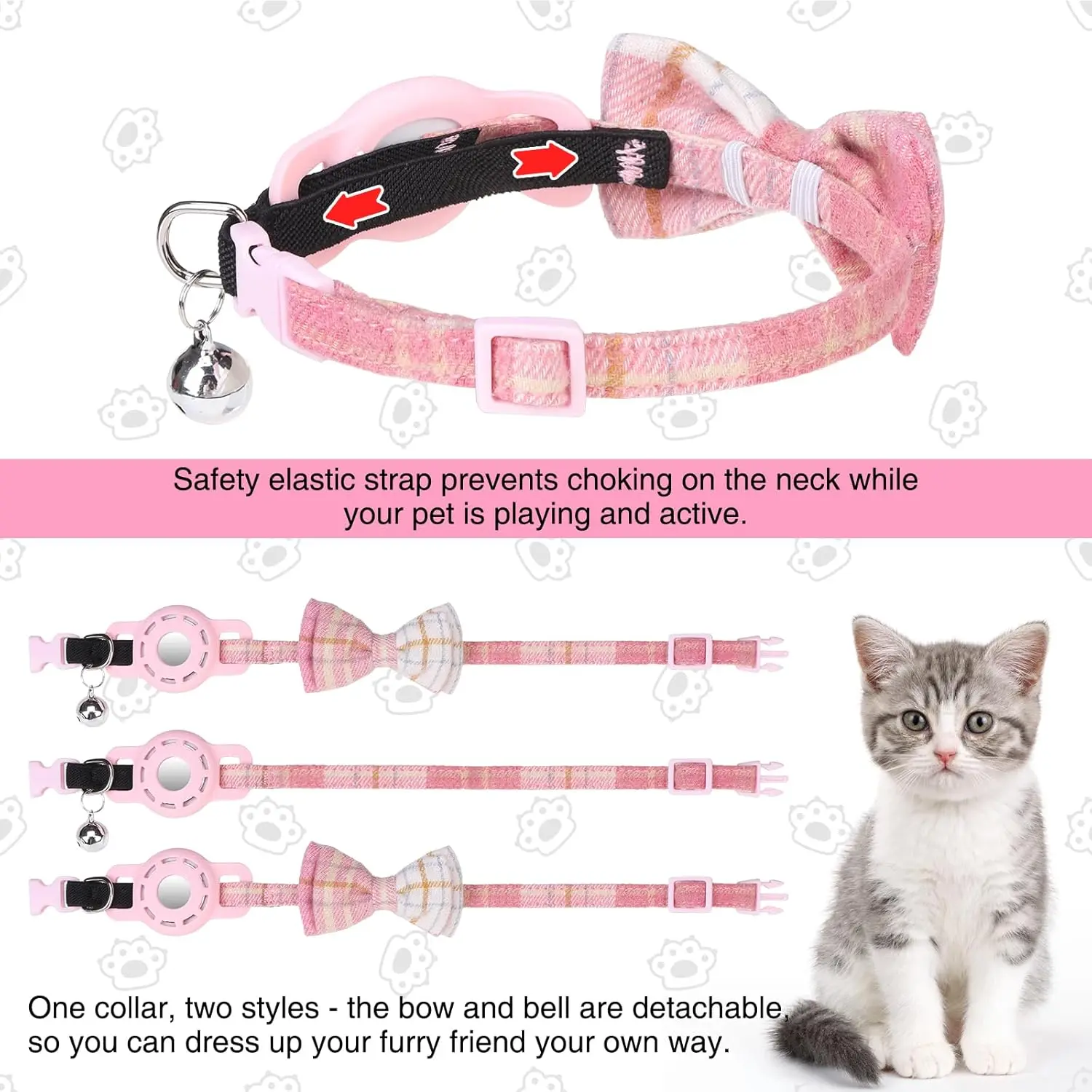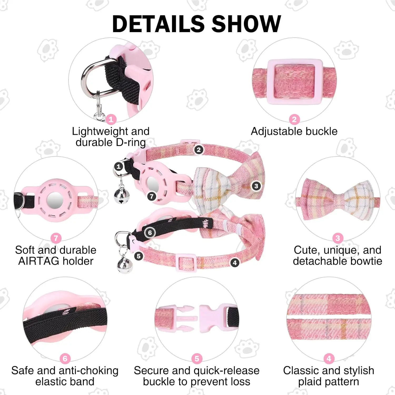 Pretty and classic plaid patterned collar. Bright and light, the movable & detachable bowtie makes the collar has three wearing methods, suitable for male & famale, girl & boy cats.