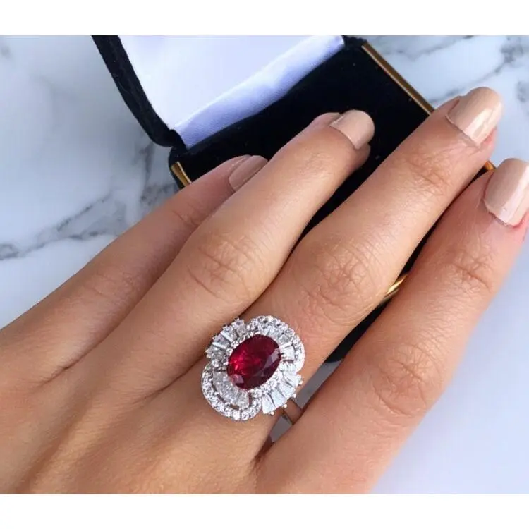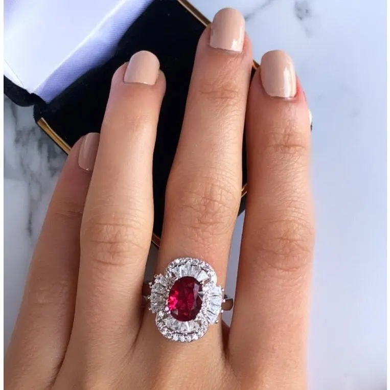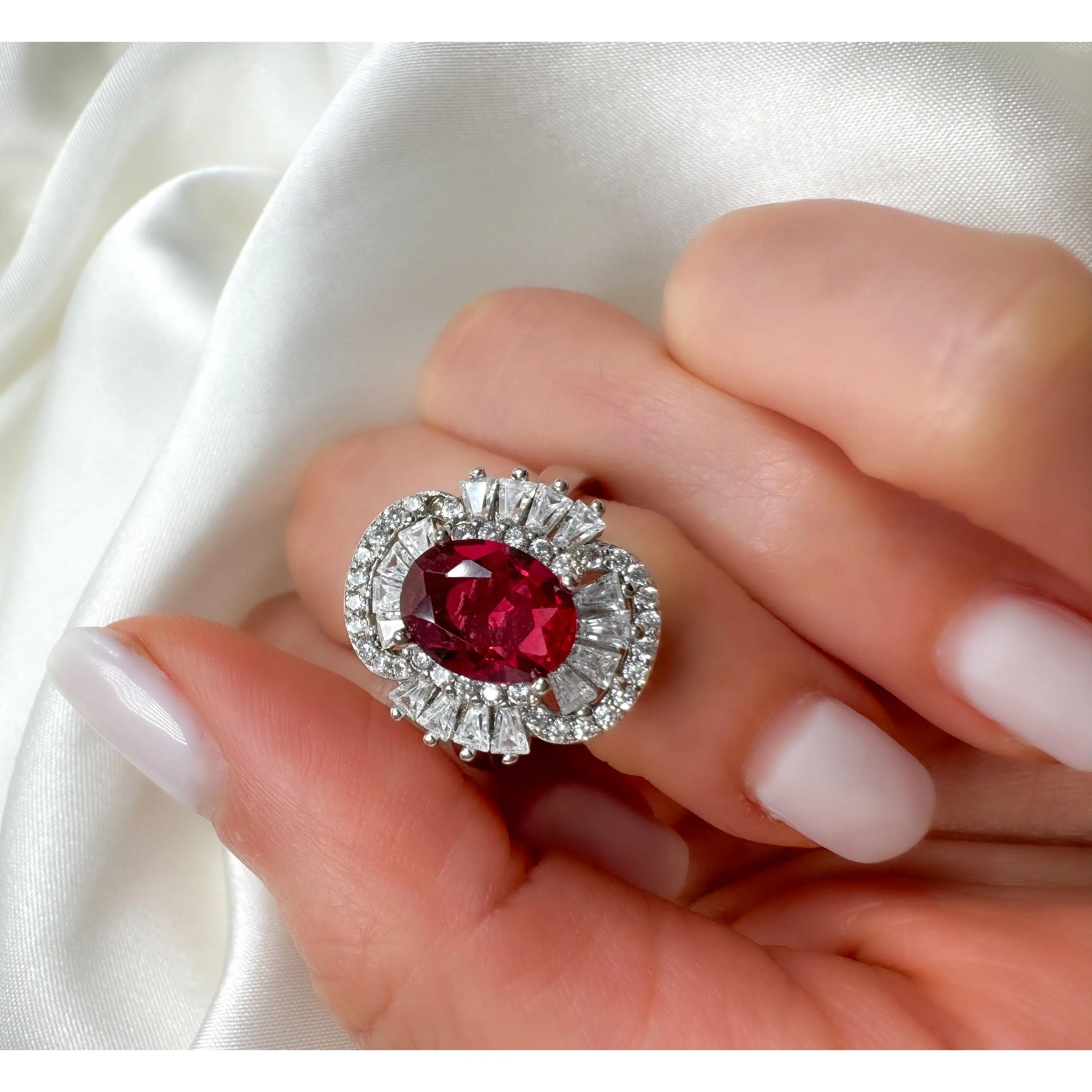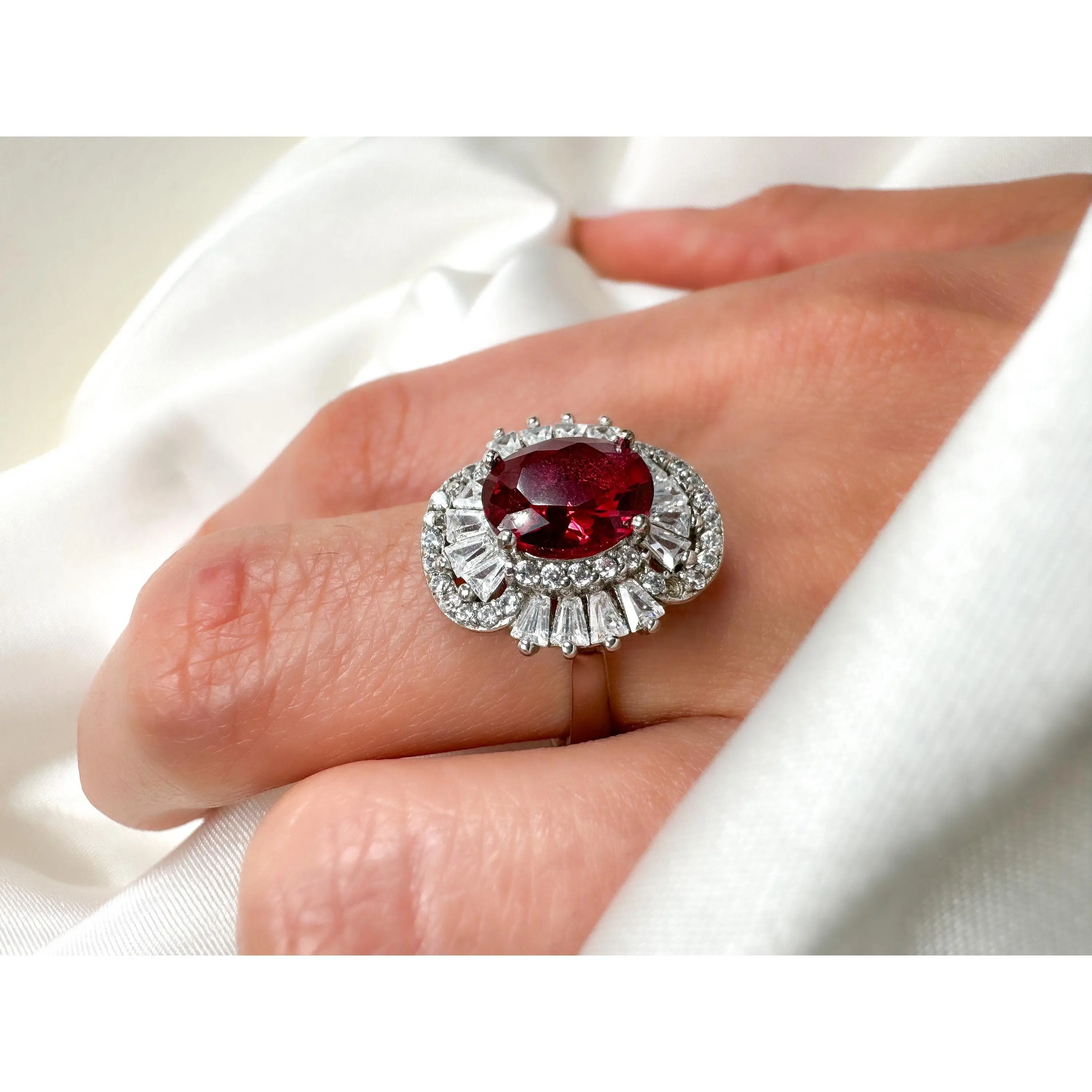 2Ct Oval Cut Ruby Statement Silver Ring, Size 7