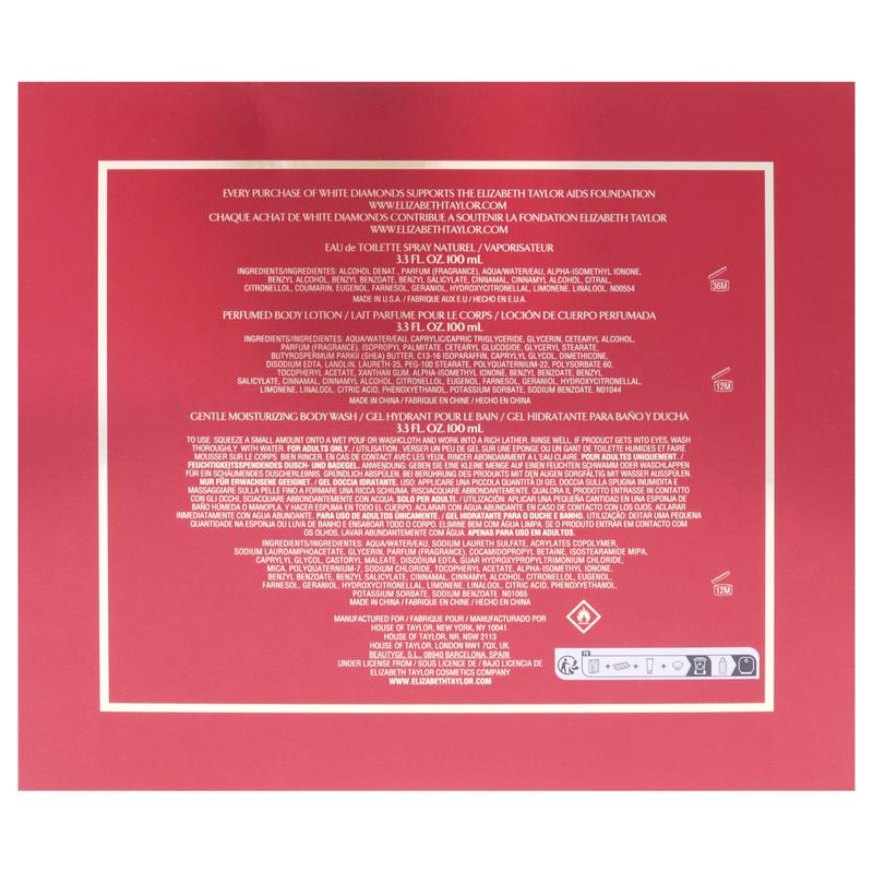 5. White Diamonds En Rouge by Elizabeth Taylor for Women - 3 Pc Gift Set 3.3oz EDT Spray, 3.3oz Body Lotion, 3.3oz Body Wash