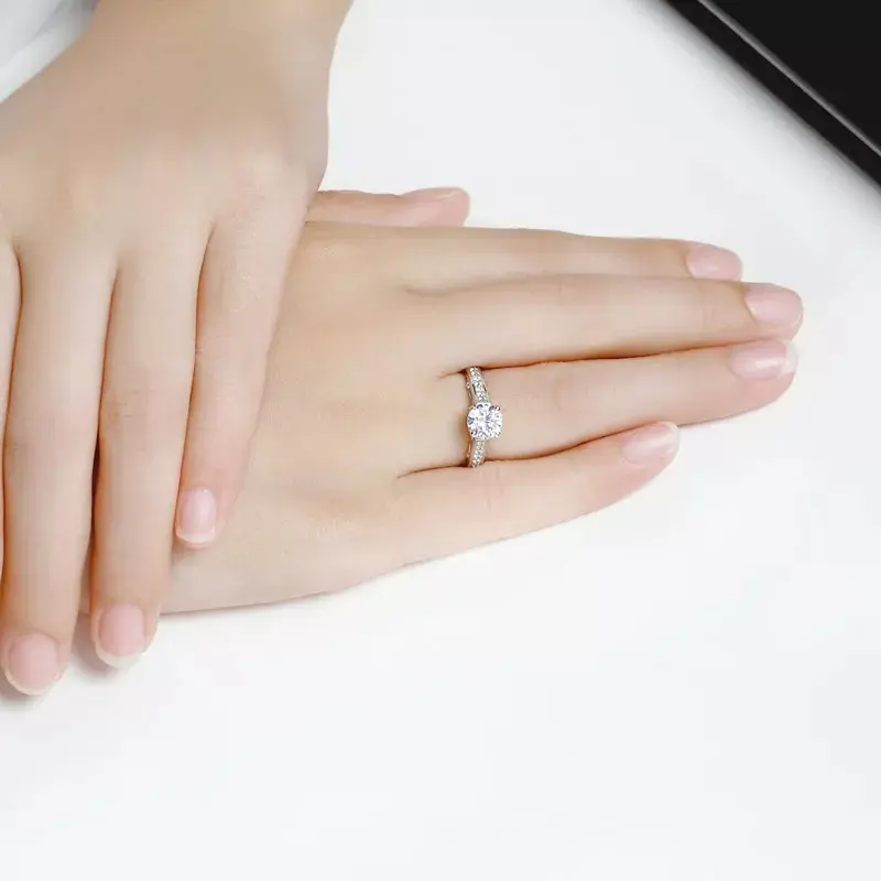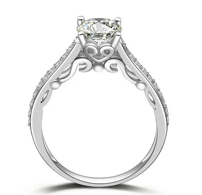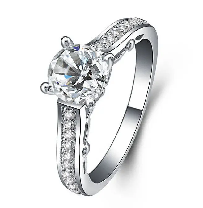 You are looking at gorgeous round cut solitaire women's CZ .925 sterling silver engagement/wedding/fashion rings. This ring features a 7mm brilliant round cut center stone, and 20pcs 1.2mm round cut accent stones. Top quality AAA Cubic Zirconia display amazing enriched clarity just like real diamonds! Total carat weight is approx. 1.45 carats diamond equivalent. Set in .925 sterling silver (stamped) and finished with rhodium plating for maximum shine and protection (platinum look). This gorgeous ring sparkles a lot!! Thanks for looking!