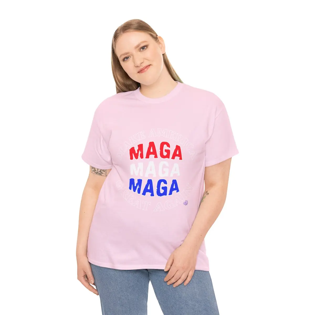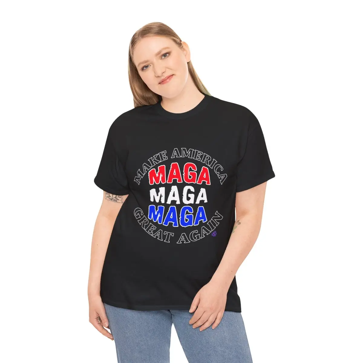 Stand out, blend in or speak out your mind using these comfortable customized MAGA t-shirts available in multiple colors, styles and sizes. It has a classic fit with thick cotton fabric.