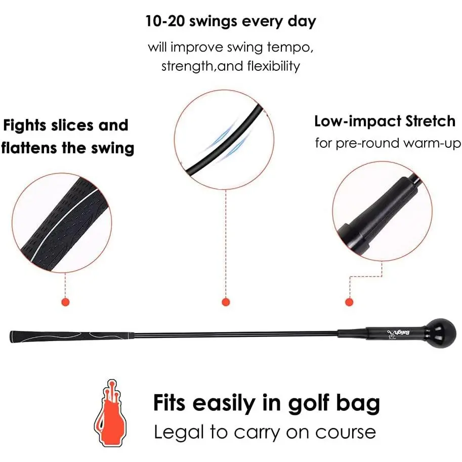 Product Description All golfers get frustrated from time to time. You play once a week, spend a couple of hours practicing, but still don’t seem to get any better. Why don’t you see your scores improving? Please don't worry, our golf training aid is right here to solve your problem. Improve Your Swing. Improves swing tempo, strength, and flexibility. Find the natural feel of lag, and develop core golf muscles with this golf trainer. Simply 'swing' the golf training aid back and forth continually without stopping at impact position, as if swinging to a metronome. 2.5 LBS Rubber Head
