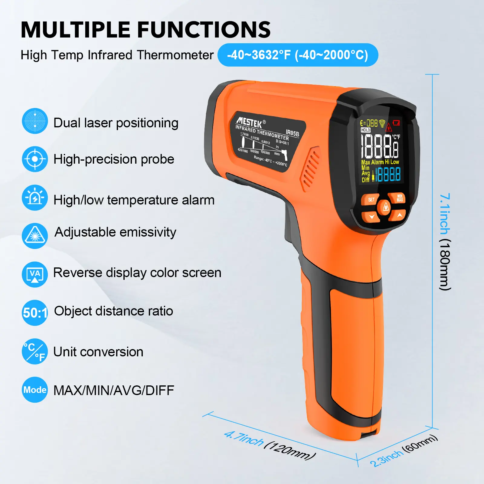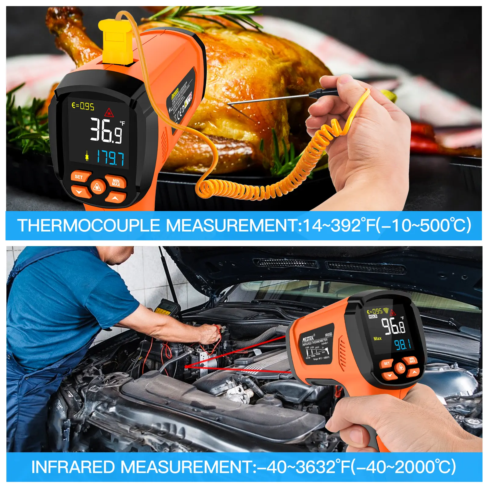 1.IR05B: -40°F ~3632°F(-40-2000℃),with temperature probe